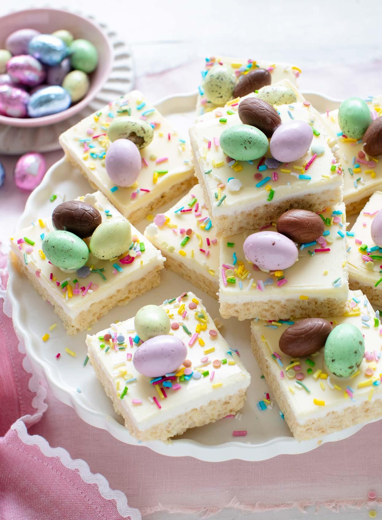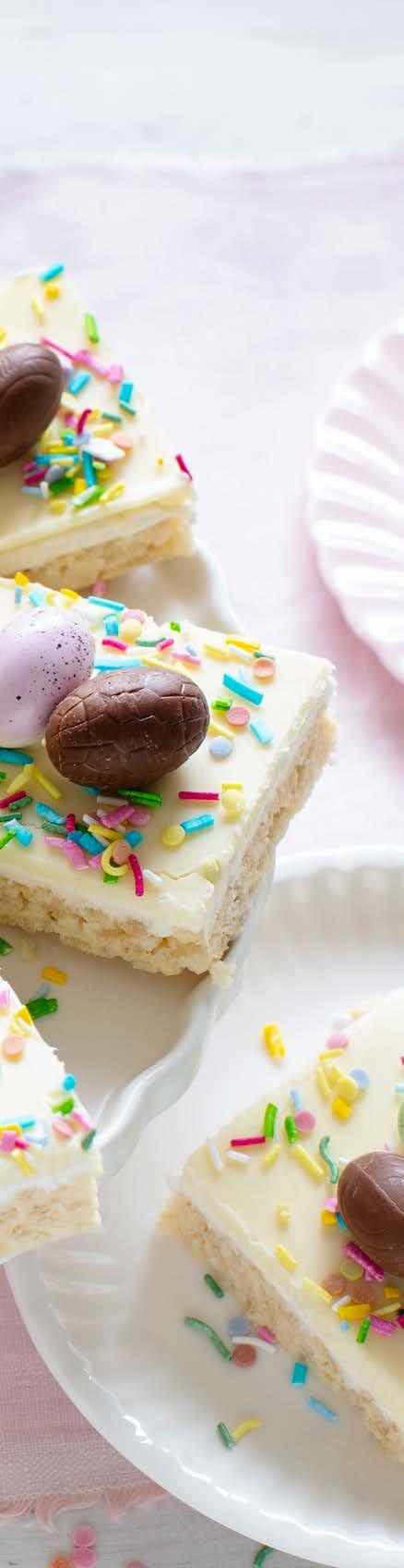 THIS EASTER WHITE CRACKLE SLICE IS A FUN TWIST ON A CLASSIC! PACKED WITH WHITE CHOCOLATE, CRISPY RICE AND EASTER EGGS ON TOP, IT’S THE PERFECT NO-BAKE TREAT FOR THE EASTER HOLIDAYS.