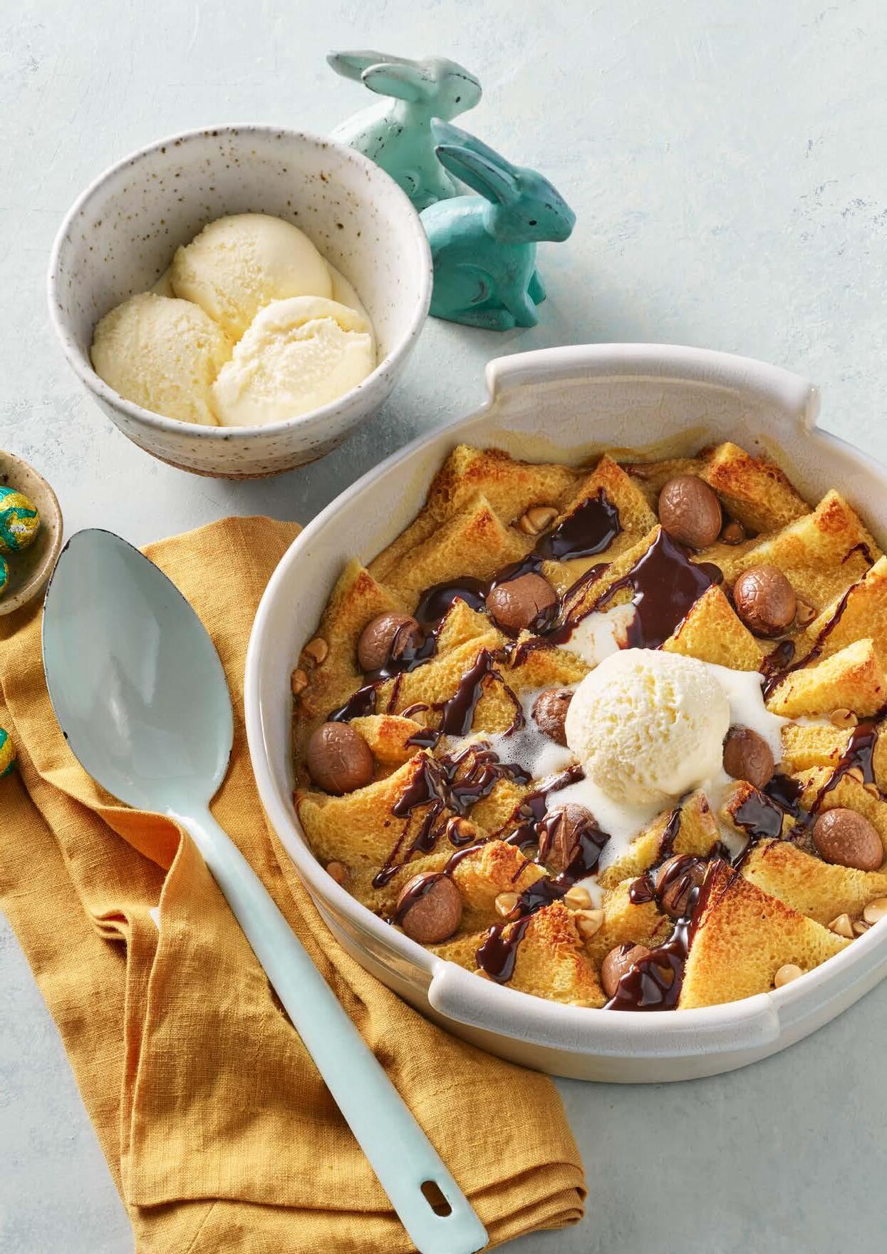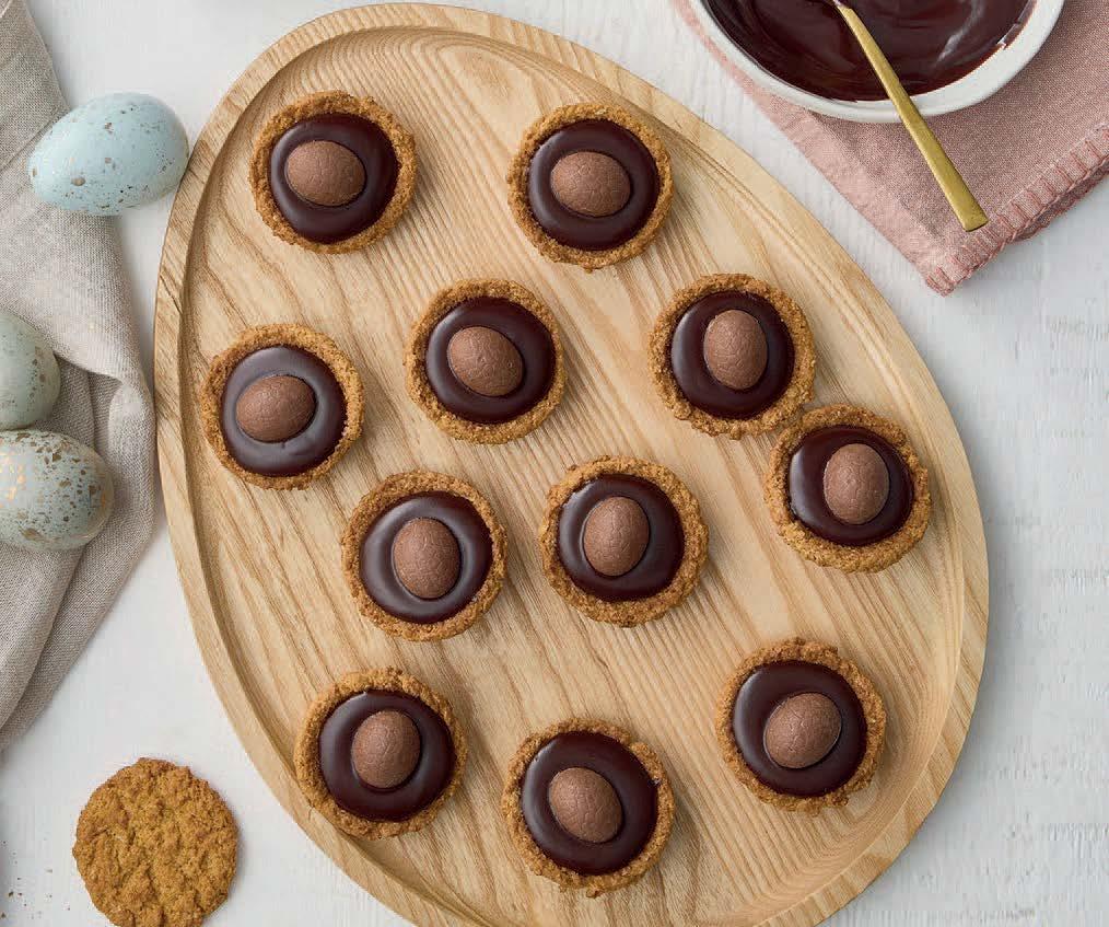 1. Evenly divide the crushed butternut snap biscuits between the 6 chocolate eggs.