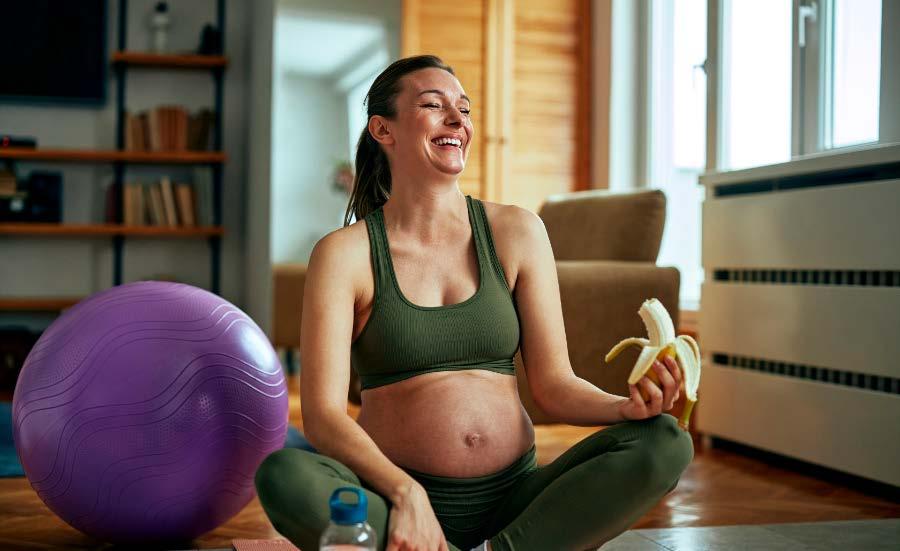The extra energy required in pregnancy should mainly be from carbohydrates and protein, and a little fat. Bananas are an excellent source of carbohydrate. The carbohydrate is mainly in the form of natural sugars and little starch. Extra protein is needed during pregnancy to support growth of new cells in the mother and baby, especially the in 2nd and 3rd trimester.