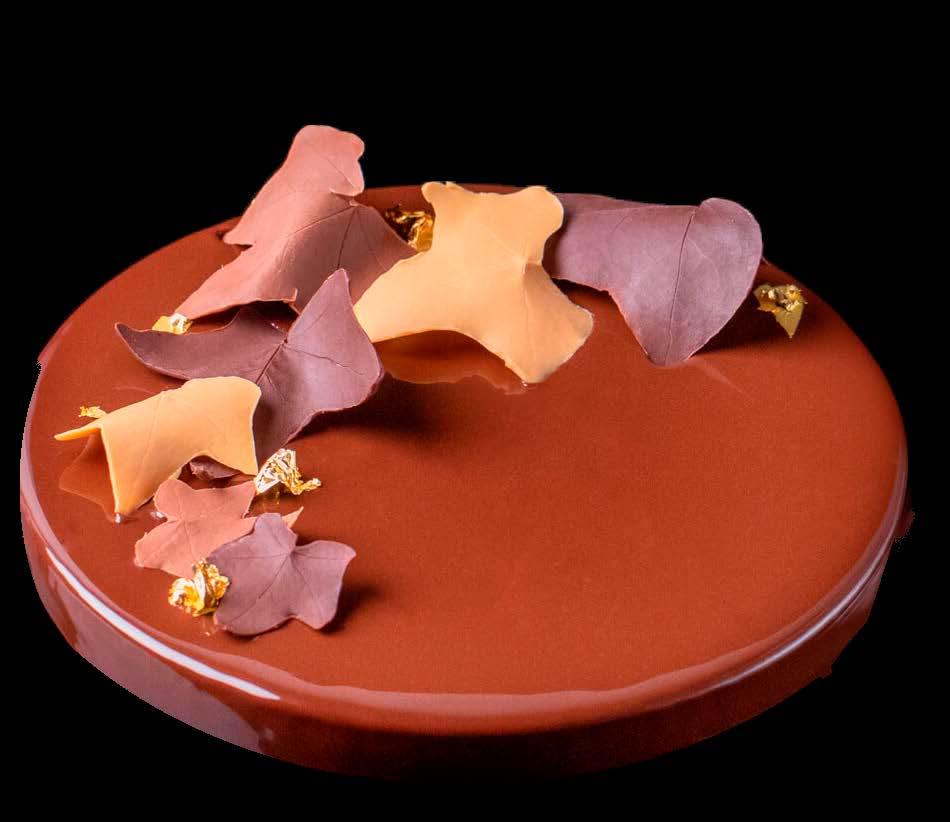 7. Garnish the top of the glazed tart with the chocolate ivy leaves.