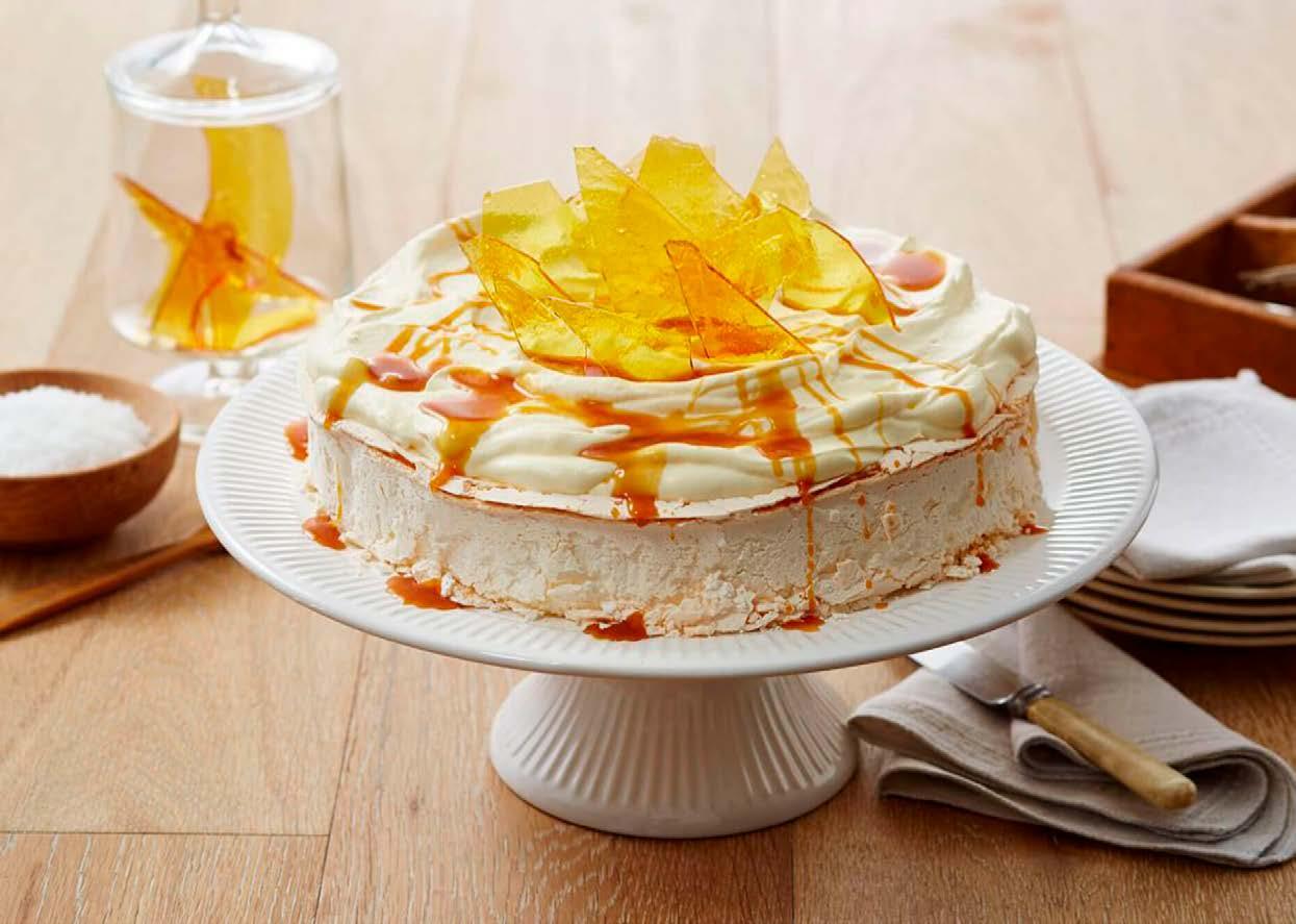 3. Then turn the heat up to medium and cook without stirring for 8-10 minutes, occasionally brushing down the sides of the pan with a damp pastry brush, until a golden caramel forms. Summer Berr y Pavlova Smashed Tropical Pavlova Salted Caramel Pavlova.