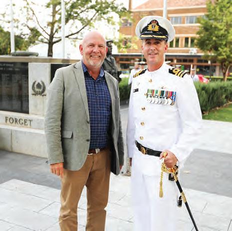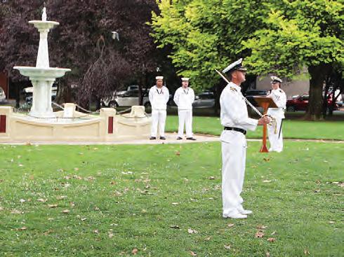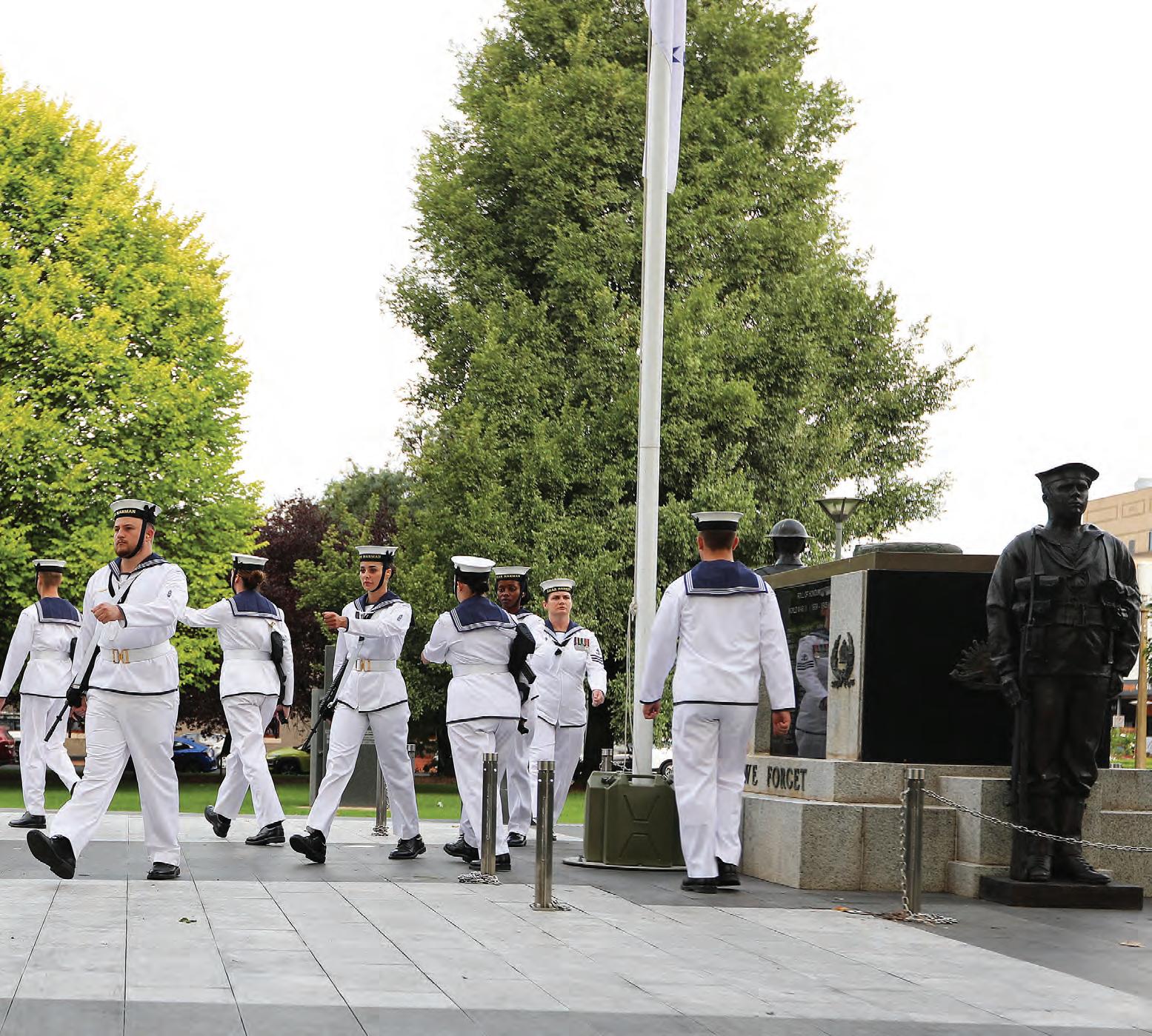 Touring the region as a part of Navy Week celebrations, the Commanding Officer of HMAS Harman, Commander Glyn Hunter oversaw a “Beat to Quarters” and “Ceremonial Sunset” at the Cenotaph in Robertson Park.