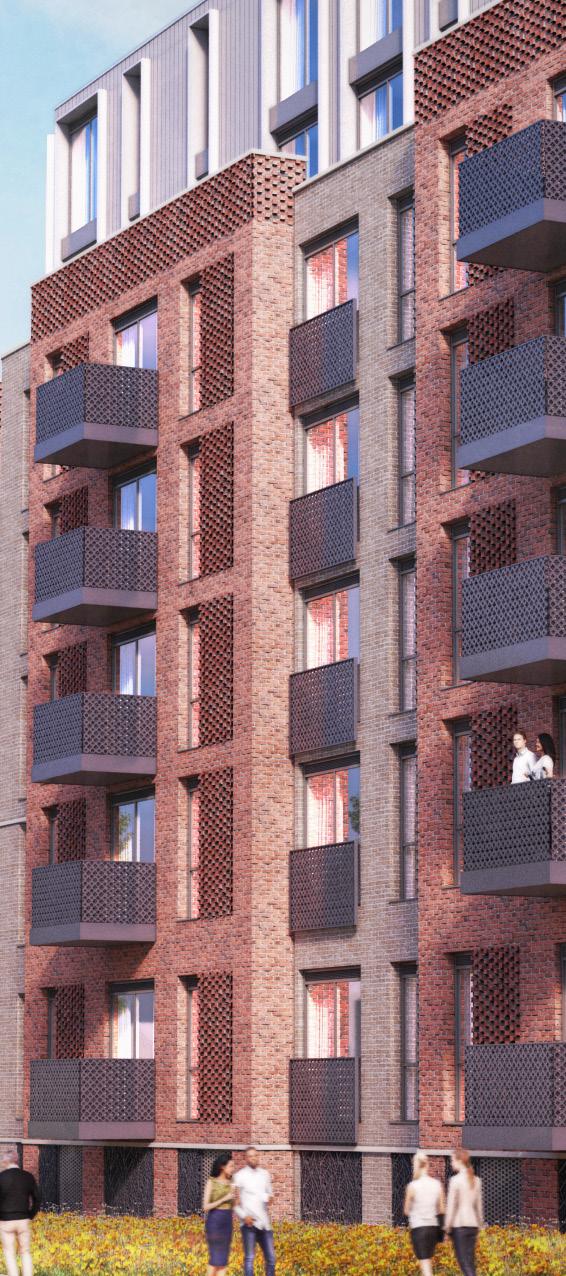 Over 900 new homes will be created in a mix of PRS and private sale, across a range of building types with tallest at 32 storeys at the north end of the site.