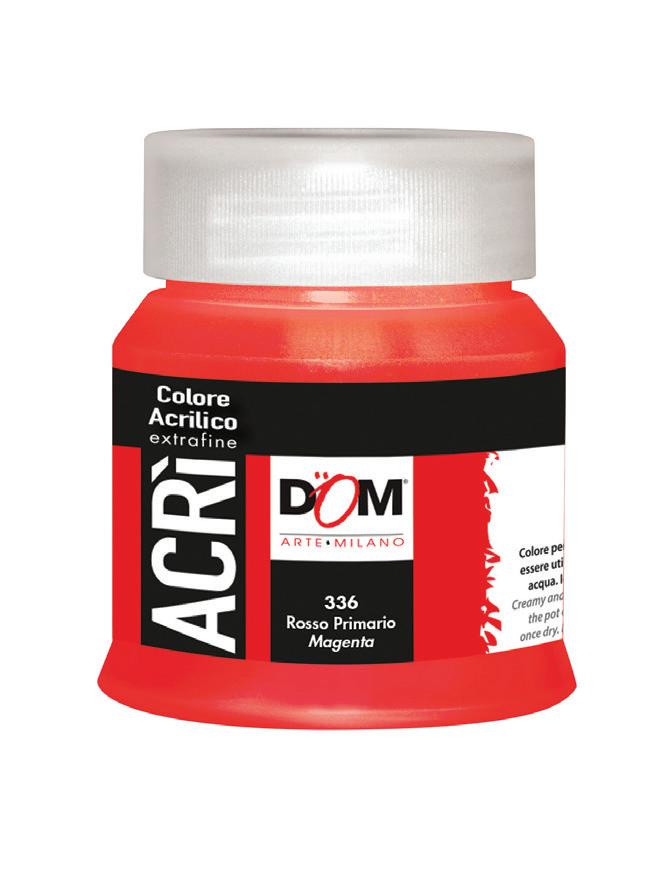 COLORI ACRILICI ml. 500 Articolo Descrizione 11972/... acrilico barattolo ml.500 (vedi cartella colori) 11972/227 giallo primario 11972/315 carminio 11972/104 bianco di titanio 11972/201 carnicino 11972/304 arancio brillante 11972/336 rosso primario magenta 11972/210 giallo Napoli 11972/302 scarlatto 11972/400 blu primario cyan 11972/326 rosso di cadmio 11972/455 azzurro ceruleo 11972/215 giallo limone 11972/324 vermiglione 11972/453 blu di cobalto 11972/443 blu oltremare 11972/568 verde vescica 11972/676 giallo ocra 11972/684 terra di siena bruciata 11972/408 violetto 11972/559 verde smeraldo 11972/509 verde chiaro = Trasparente = Semi-opaco = Opaco