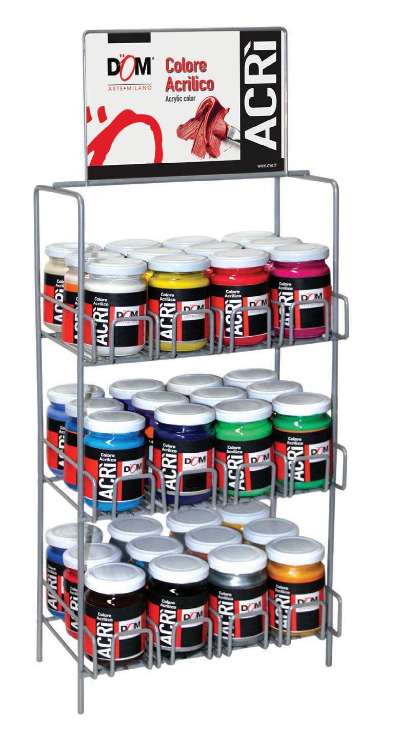 08764 36 flaconi acrilici ml.150 colori assortiti + 36 flaconi di scorta espositore: cm.36L x 22P x 51H