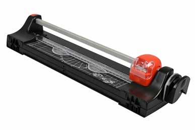Taglierina multifunzione a rotella. Struttura e piano in metallo prestampato con formati DIN. E’possibile ottenere taglio dritto, taglio a onde o perforazione in linea (per creare linee tratteggate per pieghe). Facile da usare, precisa e sicura. Lame facilmente intercambiabili.