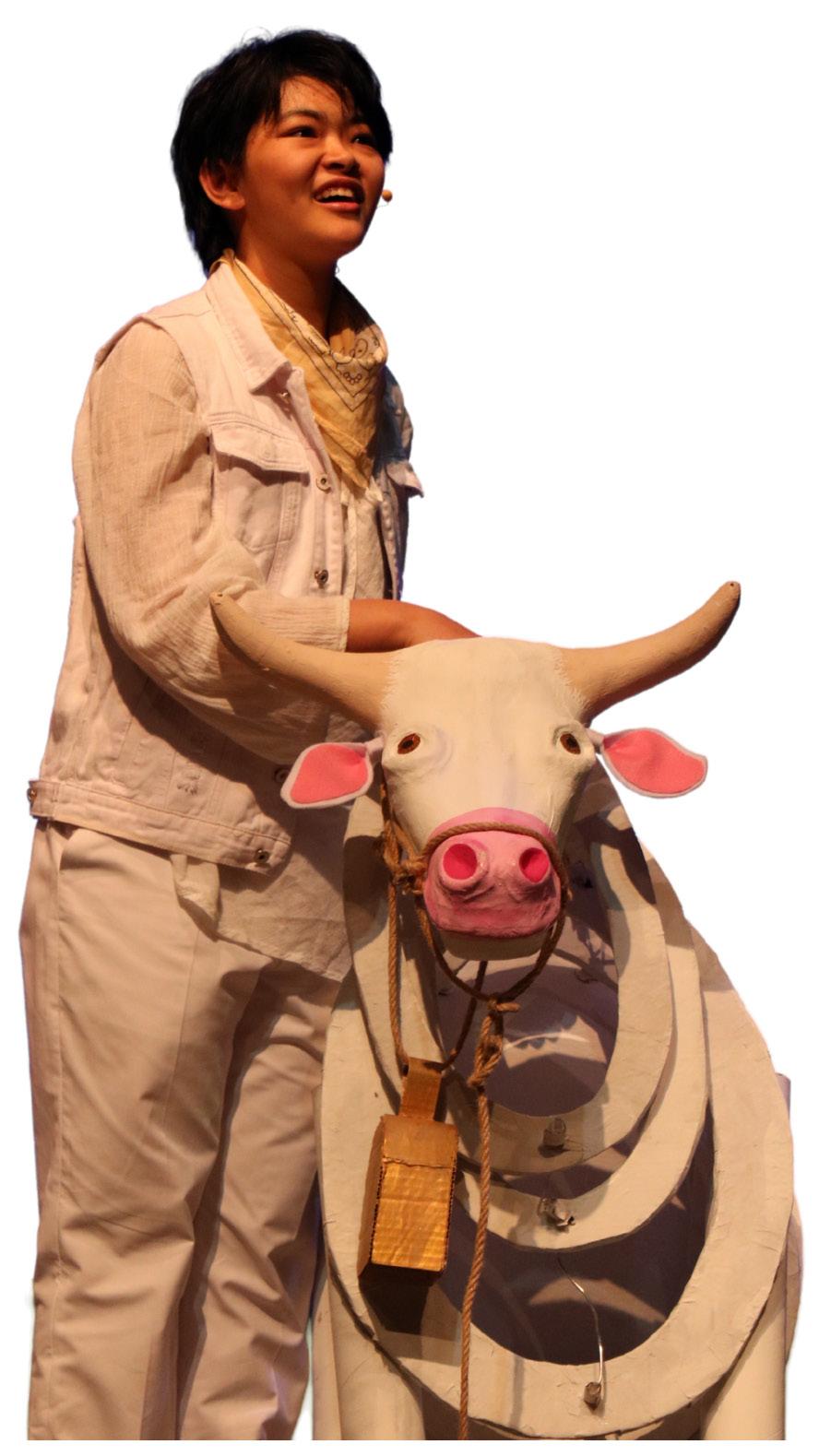 A figure dressed in a tan suit scrawled with storybook quotes saunters onto a dark stage. The student pit orchestra gives them a thumbs up, and Claire Carducci, our narrator, takes their cue to begin. After all, this story is not about them.