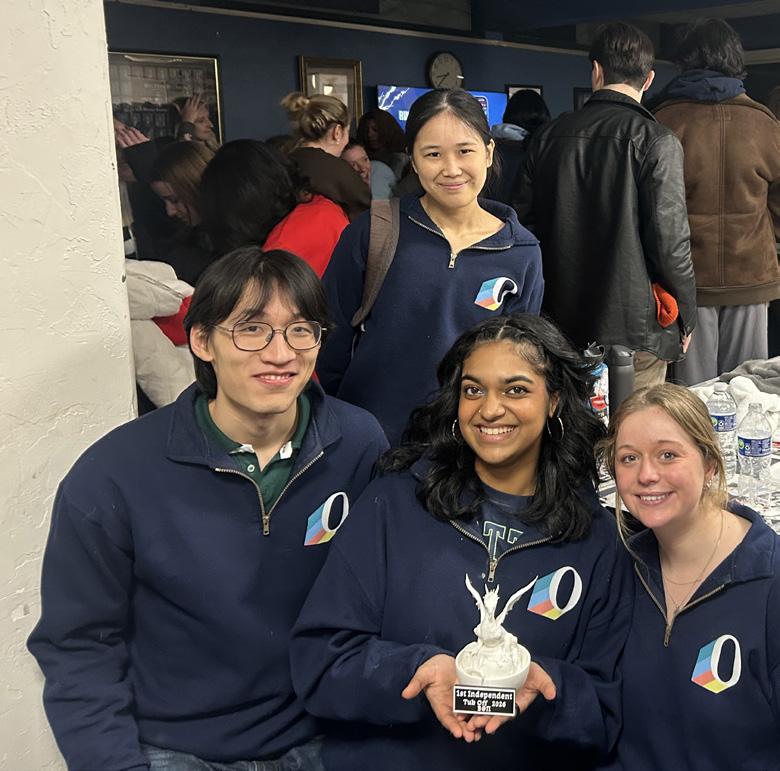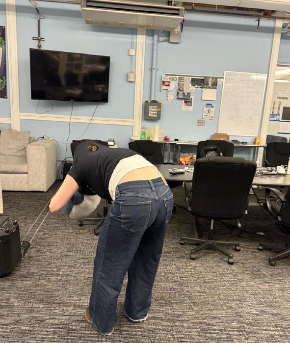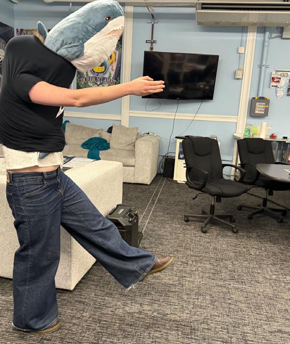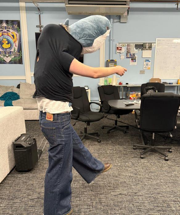 rage of references hit the stage at once. From subway surfers to people yelling brain rot buzz words, it was a lot. The sketch either really worked or really didn’t, but for the most part, you can either laugh at the brain rot or laugh at people who laugh at the brain rot. In contrast to the second to last sketch, the closer, “Donating to a Bad Cause” by Ky Tan, is fairly experimental from a form perspective. A man (Ben Creiner) walks by a fundraising table, manned by another man (Jack Exline), “for cancer,” and naturally assumes it is for cancer treatment. He donates and is horrified to find that it was a donation to support cancer itself. The sketch snowballs as he donates to increasingly worse causes and is mocked by passersby. It’s weird, shocking and sticks with you past final bows. Exactly what you want from a closing sketch. As Klineman puts it, “We can tie things up with a sketch that has the potential to be weird and different.”