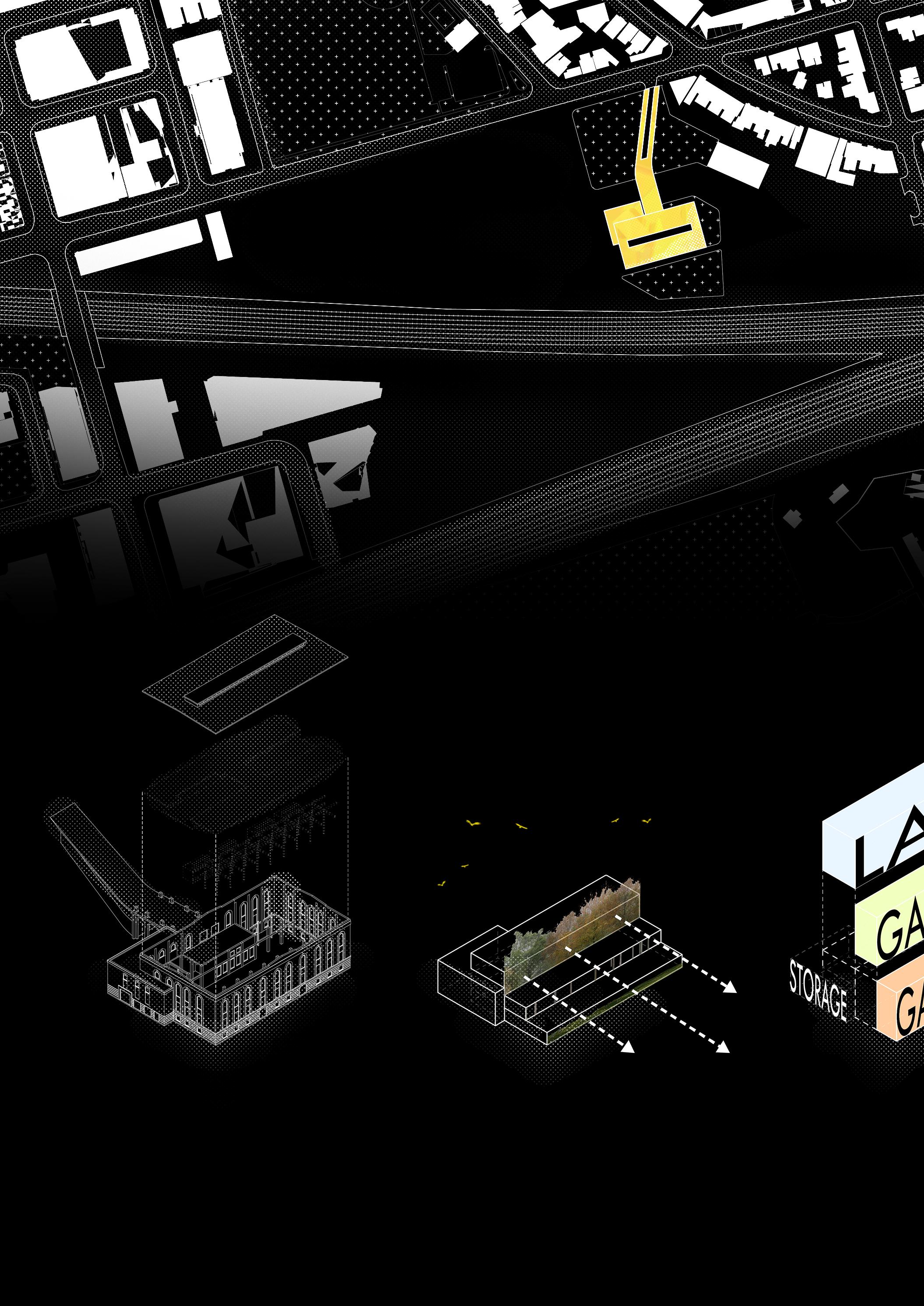A multimodal boulevard connects the site to the station, while new pedestrian streets and inner residential lanes create safer, more intimate spaces for all generations. At the threshold between the transient vehicle zone and the permanent pedestrian area, a co-housing residential development is introduced, composed of two masses: one for students and singles, and the other for multigenerational families.