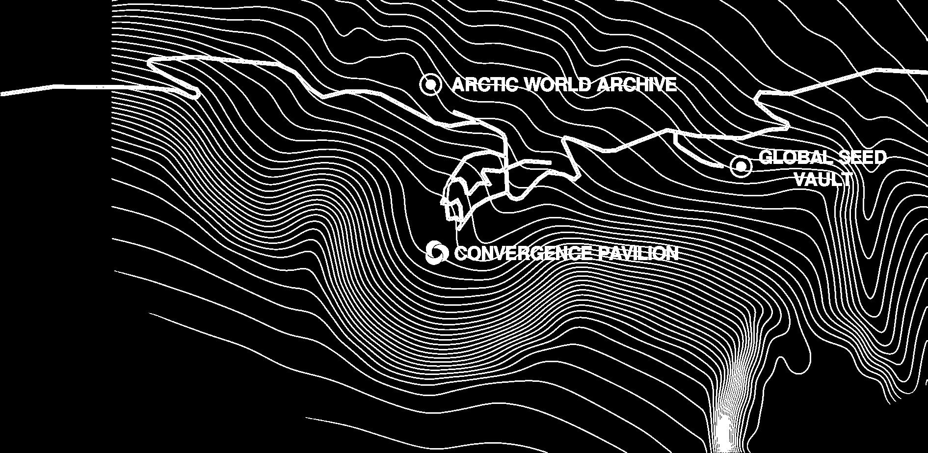 The Convergence Pavilion, located in Svalbard, Norway, stands in the midst of international initiatives dedicated to preserving humanity’s collective memory including the Arctic World Archive, the Svalbard World Seed Vault, and the Svalbard Satellite Station.