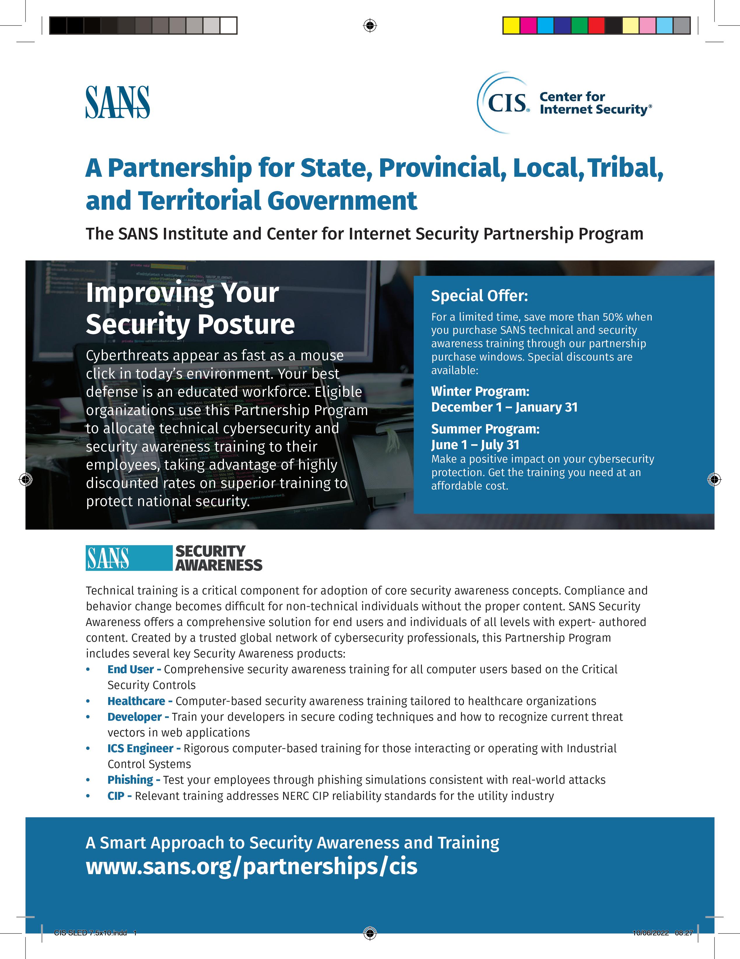 As the threat landscape continues to evolve in monumental ways for U.S. State, Local, Tribal, and Territorial (SLTT) agencies, it is now more important than ever to rely on one another and unite to mount effective defenses against today's cyber threats.