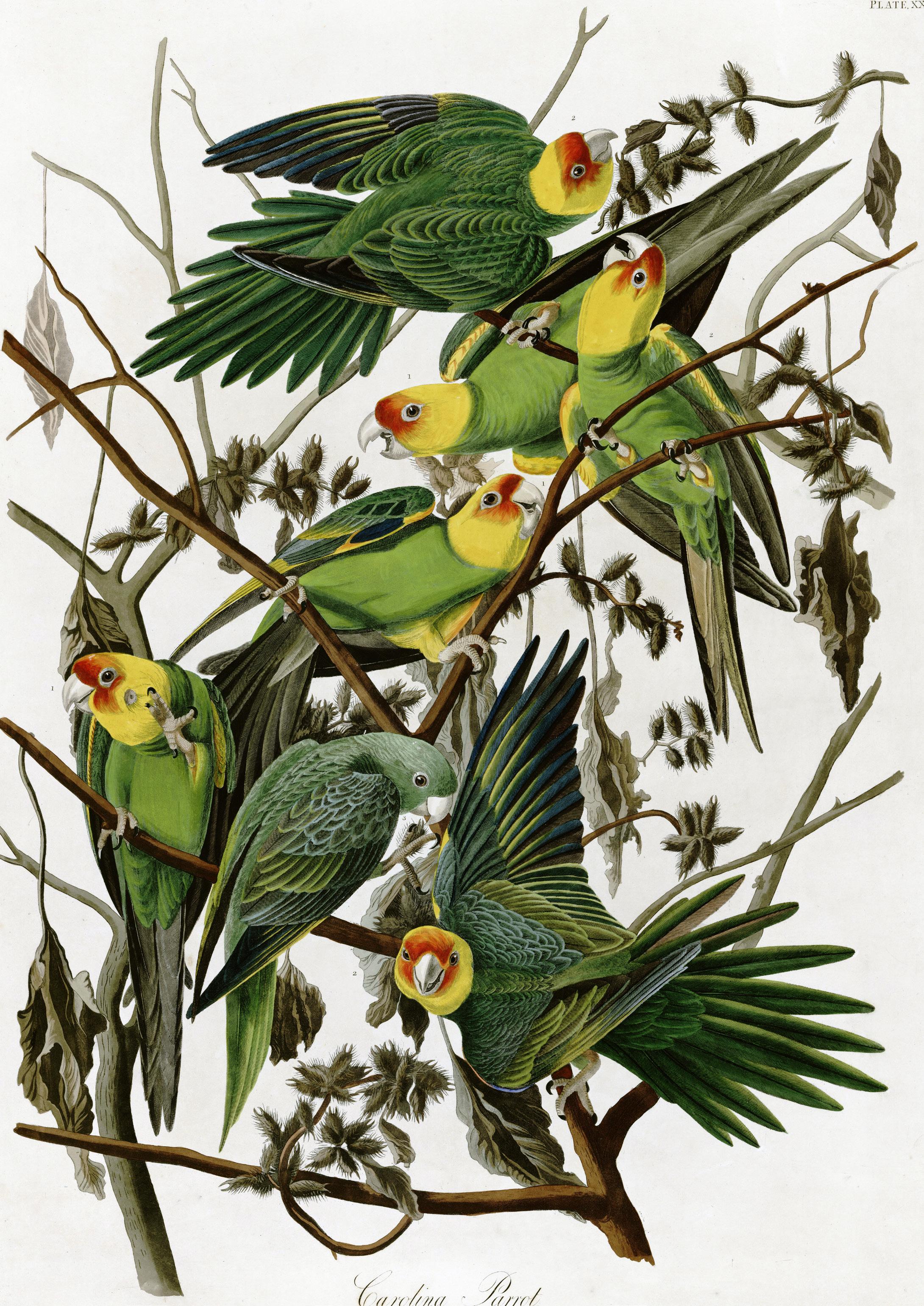 Carolina Parakeet from John James Audubon’s Birds of America (ca. 1827).