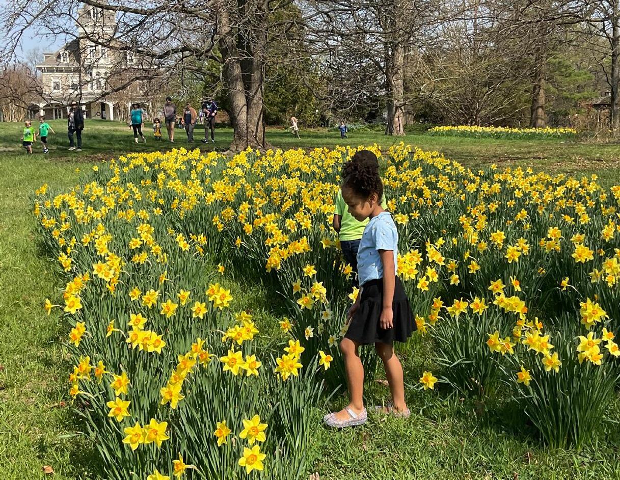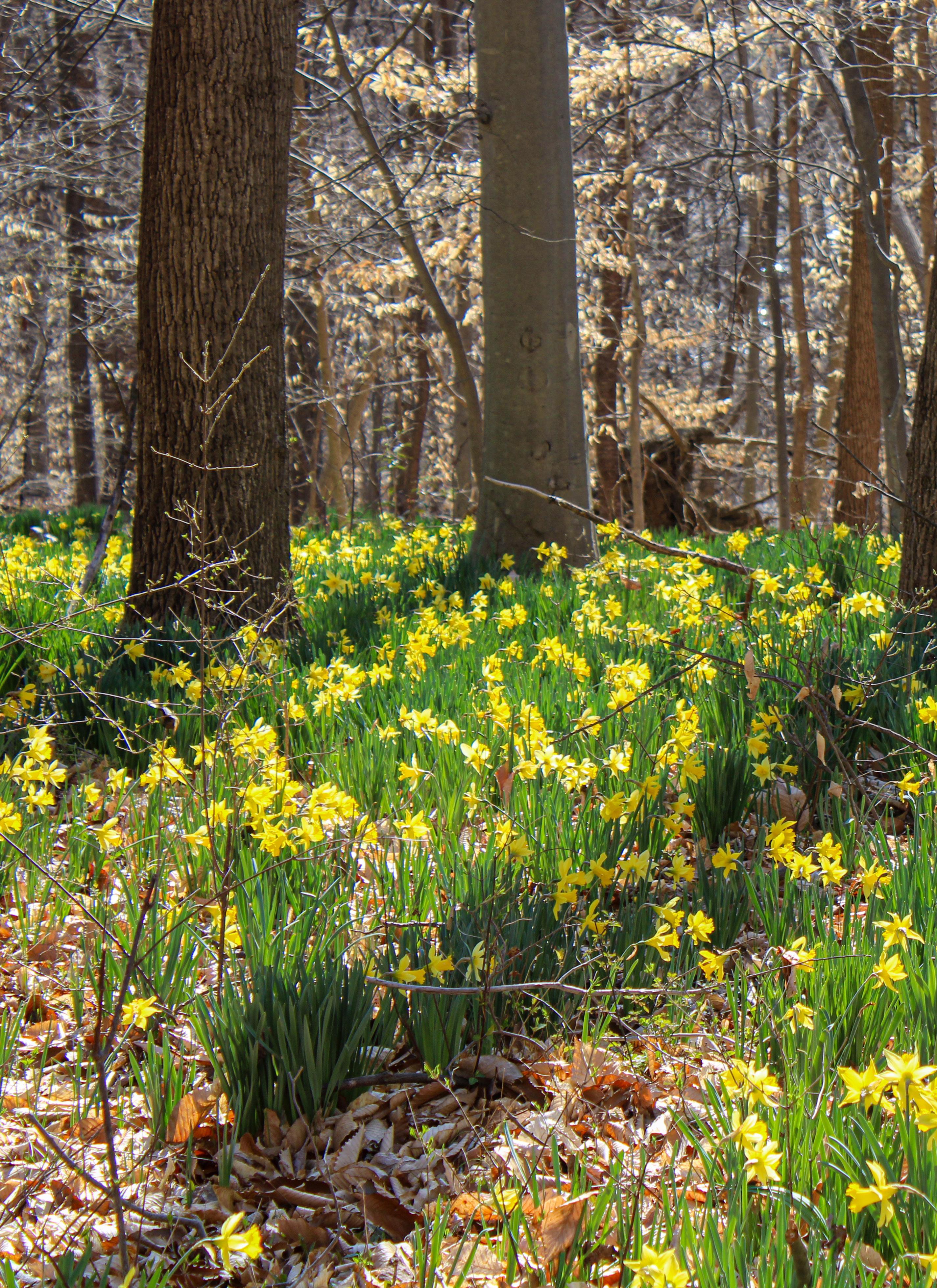 Drifts of daffodils bloom in the woods every year, a living reminder of Cylburn’s historic Tyson estate era.