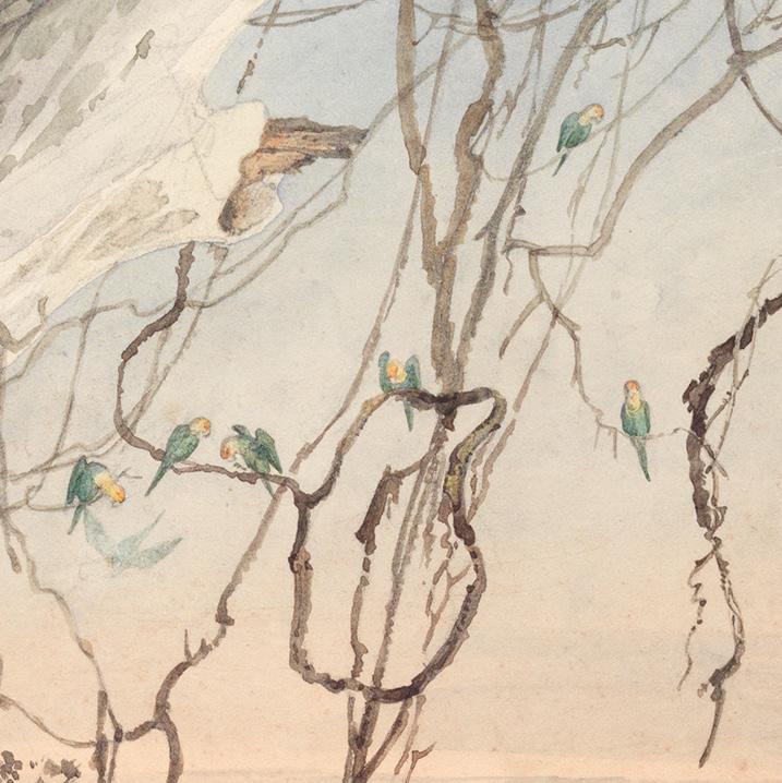 Karl Bodmer, traveling with Prince Maximilian zu Wied, painted a flock of Carolina Parakeet in a huge sycamore near New Harmony, Indiana in the winter of 1832-1833.