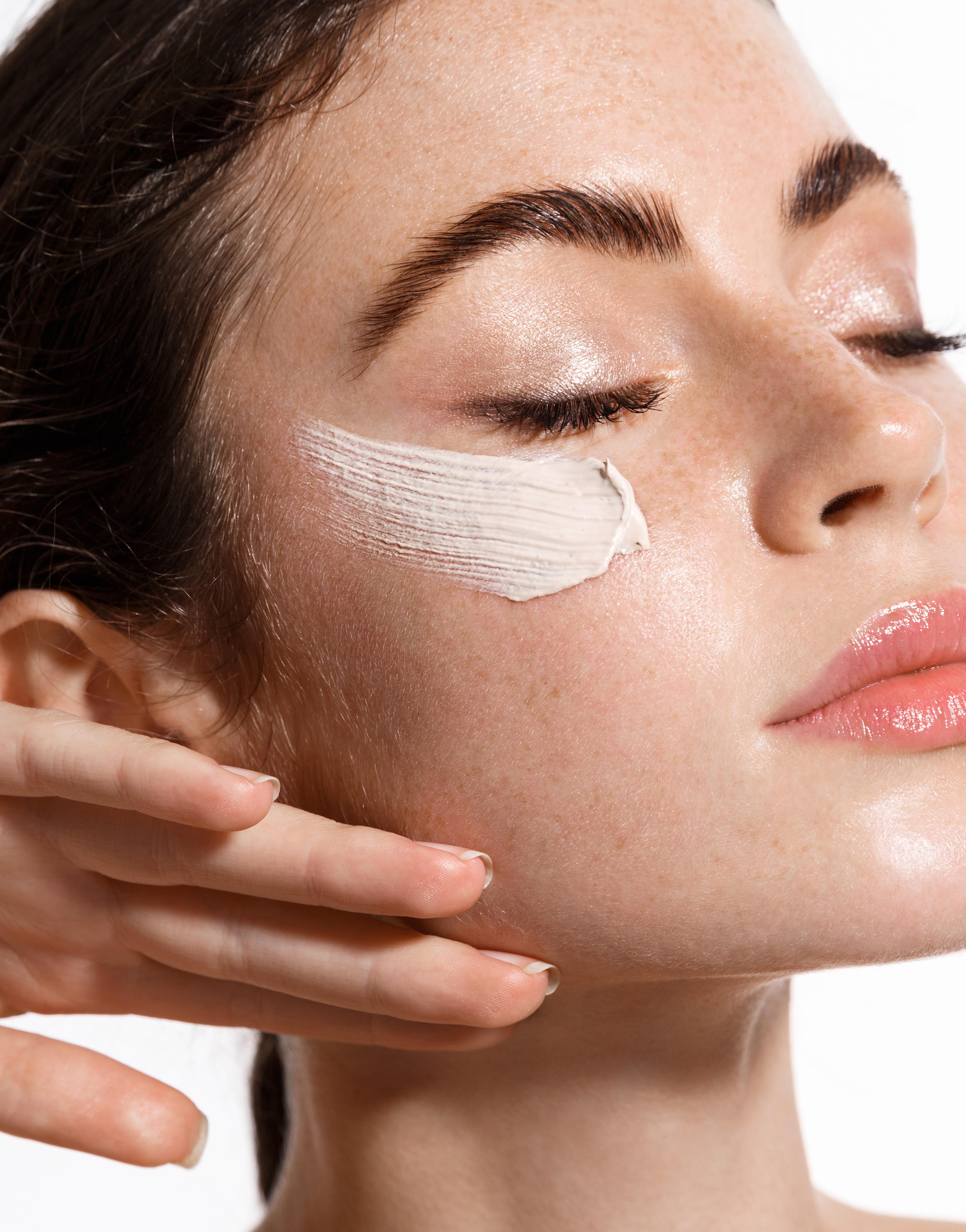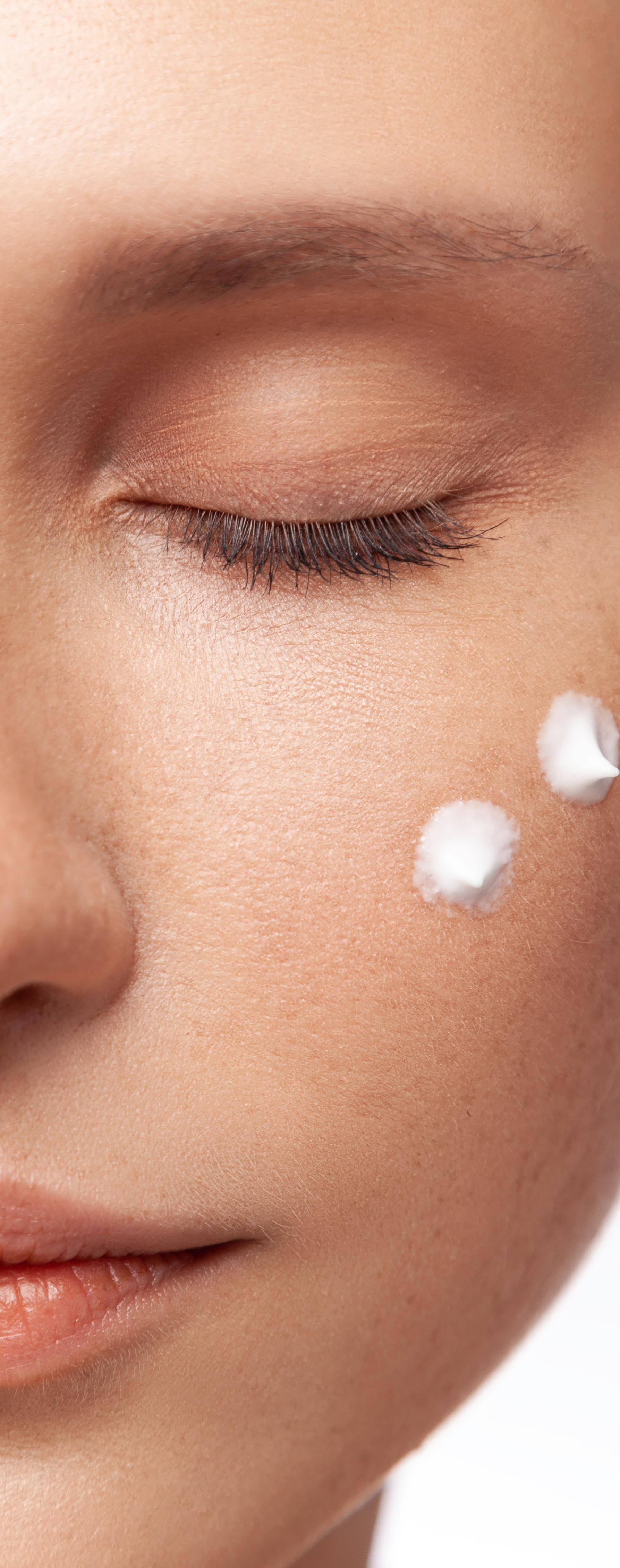 Die Creme von der zentralen Nasenmitte aus auf das Gesicht auftragen, dabei nach aussen und dann zum Hals hin verteilen.