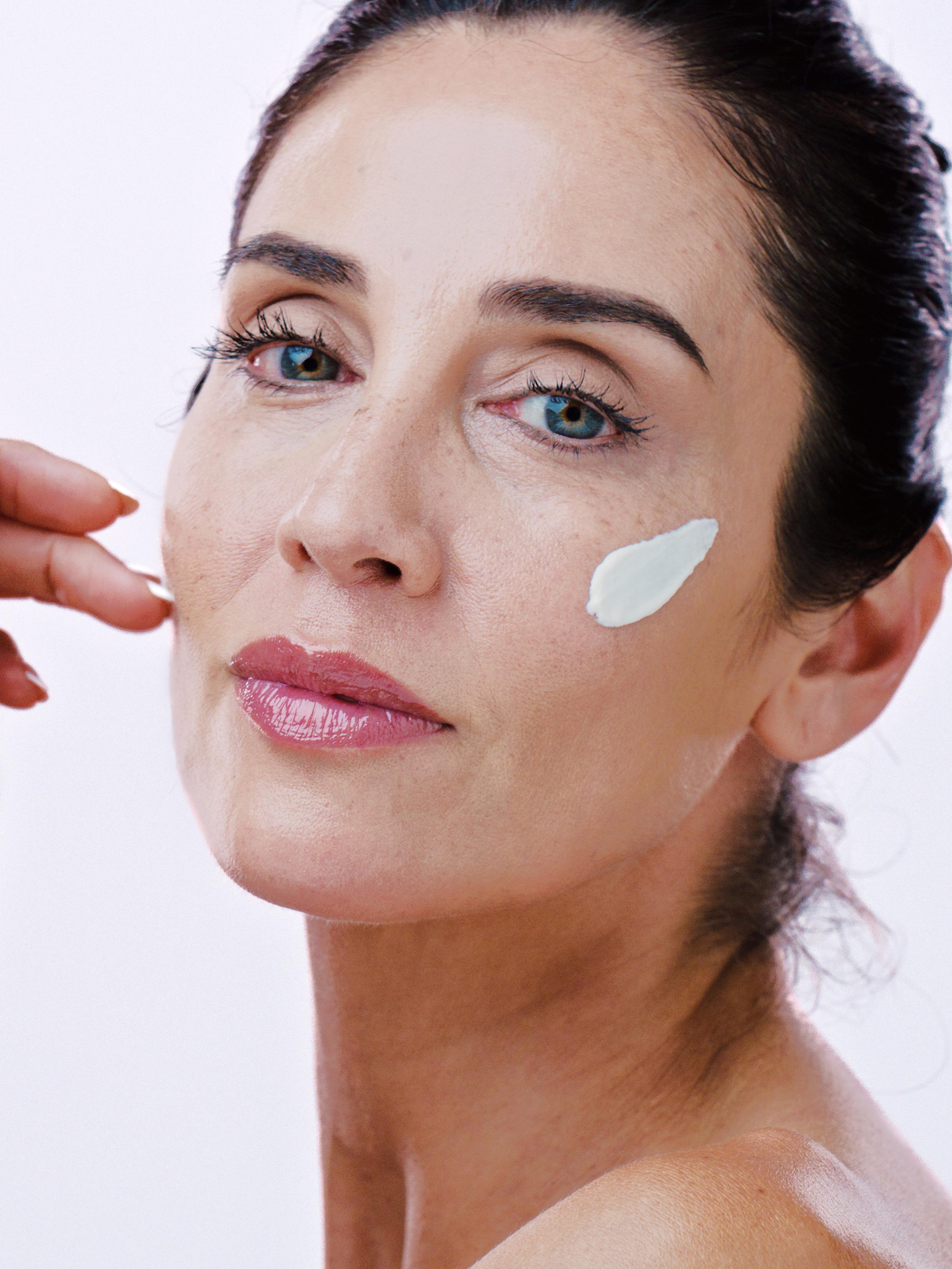 De toutes leurs surfaces, appliquez la crème sur le visage en partant de l’arête centrale du nez vers l’extérieur, puis vers le cou.