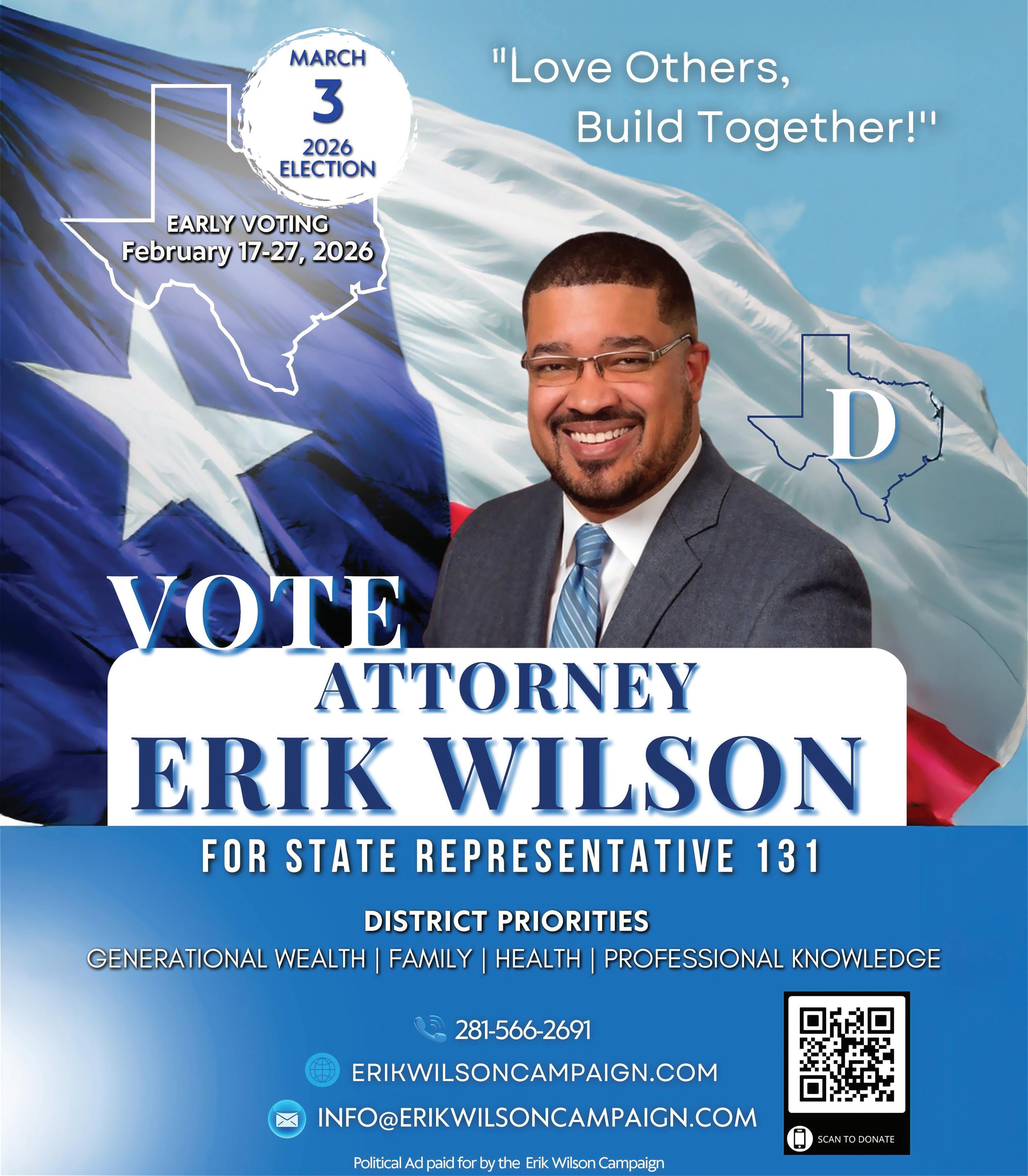 is an attorney, family man, and business owner who is a dedicated community leader, public servant, and advocate for social equity whose work reflects a deep commitment to uplifting and uniting the Houston community. Throughout his career, he has championed initiatives focused on education, economic empowerment, and civic engagement, building partnerships that create lasting impact and meaningful change. He is now a candidate for State Representative HD 131.
