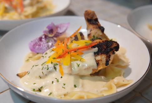1. Using a sharp knife, cut a pocket into each chicken breast without slicing all the way through.