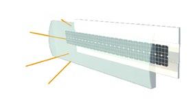 With the help of concave lens, the vertical photovoltaic panels could gather more sunlight and maximize utilization.