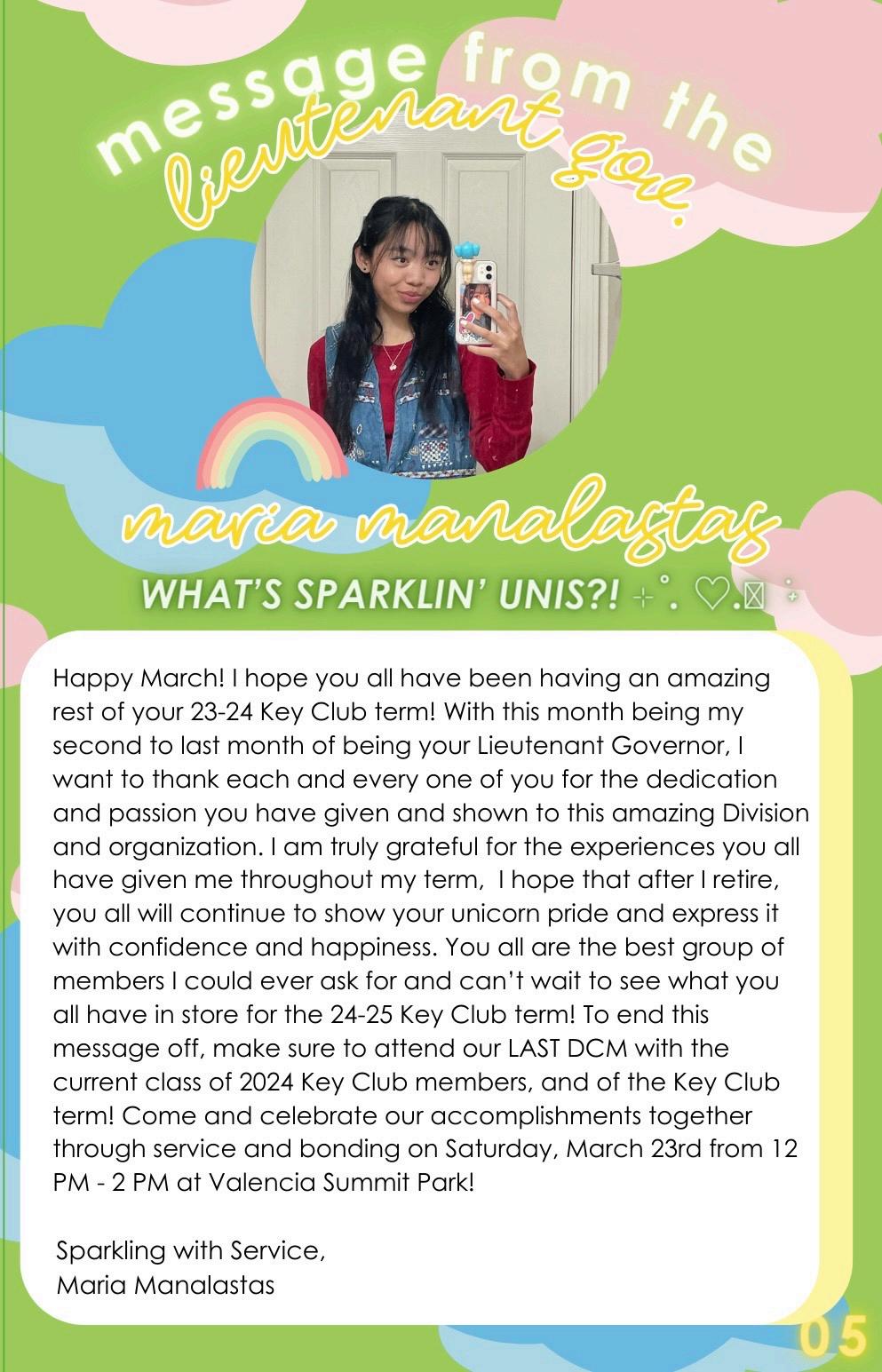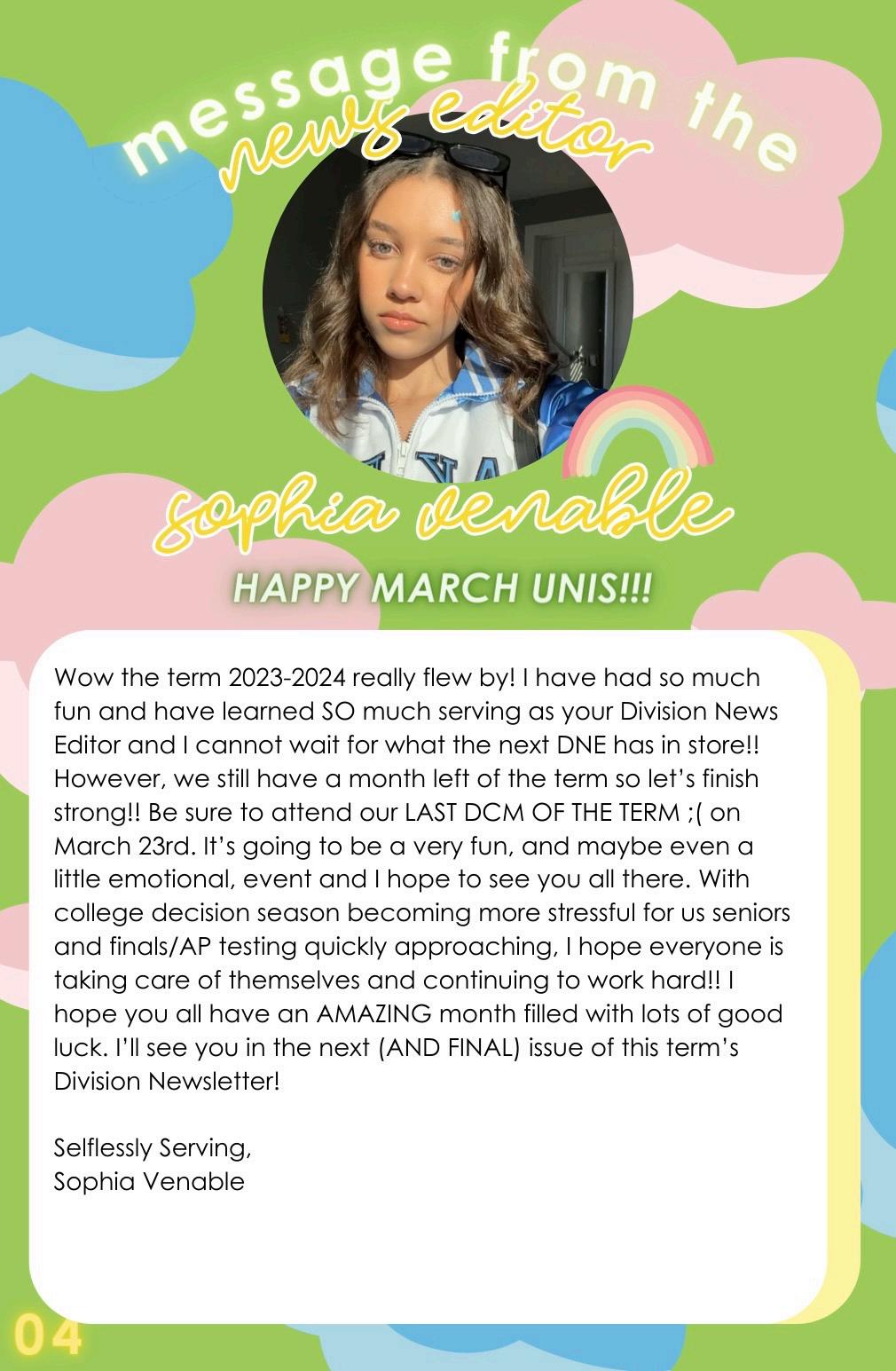 Happy March Unis! This newsletter contains important info about the March DCM, an interview with out LTG Elect, and more, so make sure to read it all! Also don't forget to check out the Division Newsletter Archive: tinyurl.com/d16northnewsletterarchive
