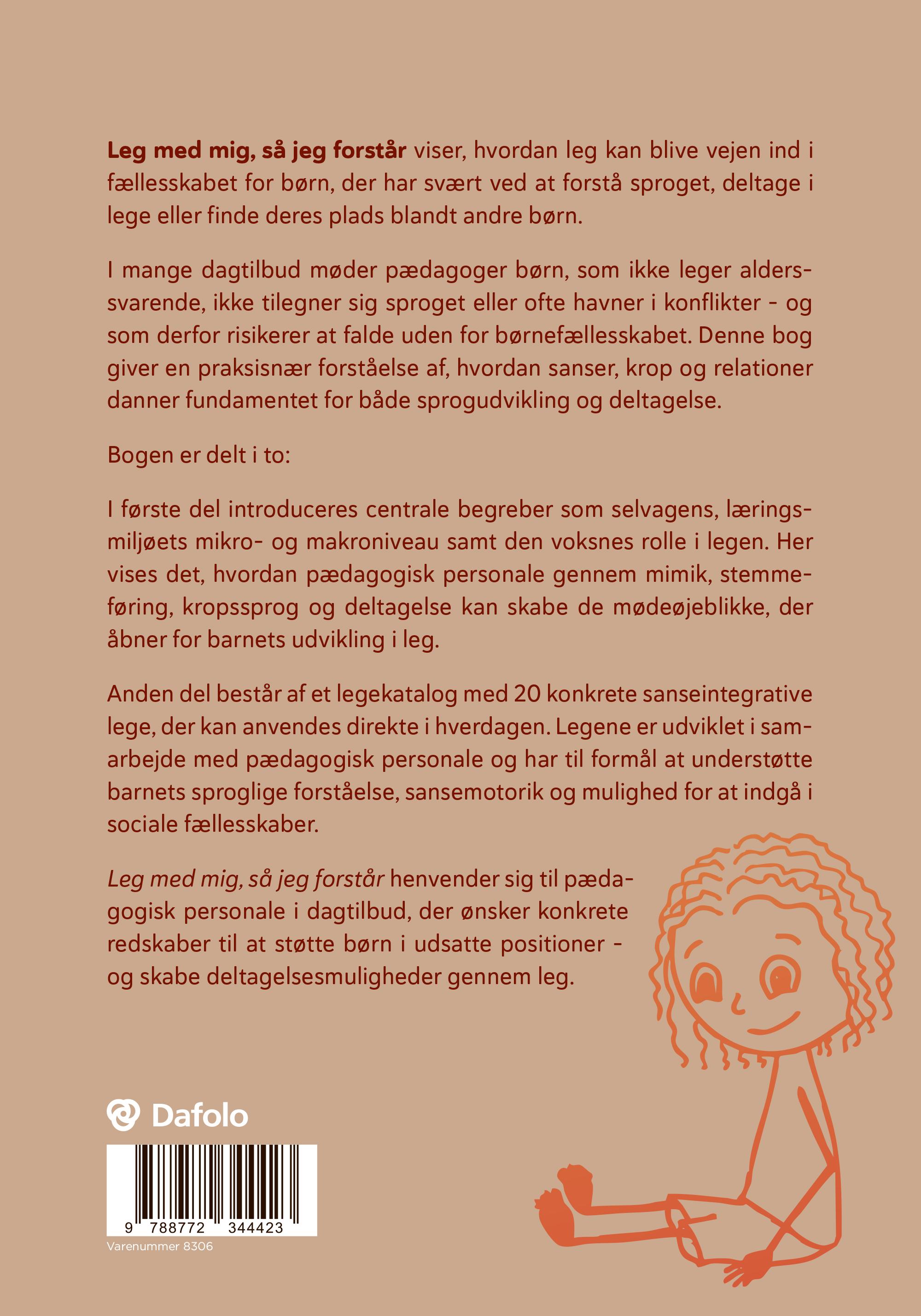Formålet med denne bog er at inspirere til at se legen i en sanseintegrativ sammenhæng, hvor legen udgør et væsentligt element til at stimulere sproget og de kognitive kompetencer.
