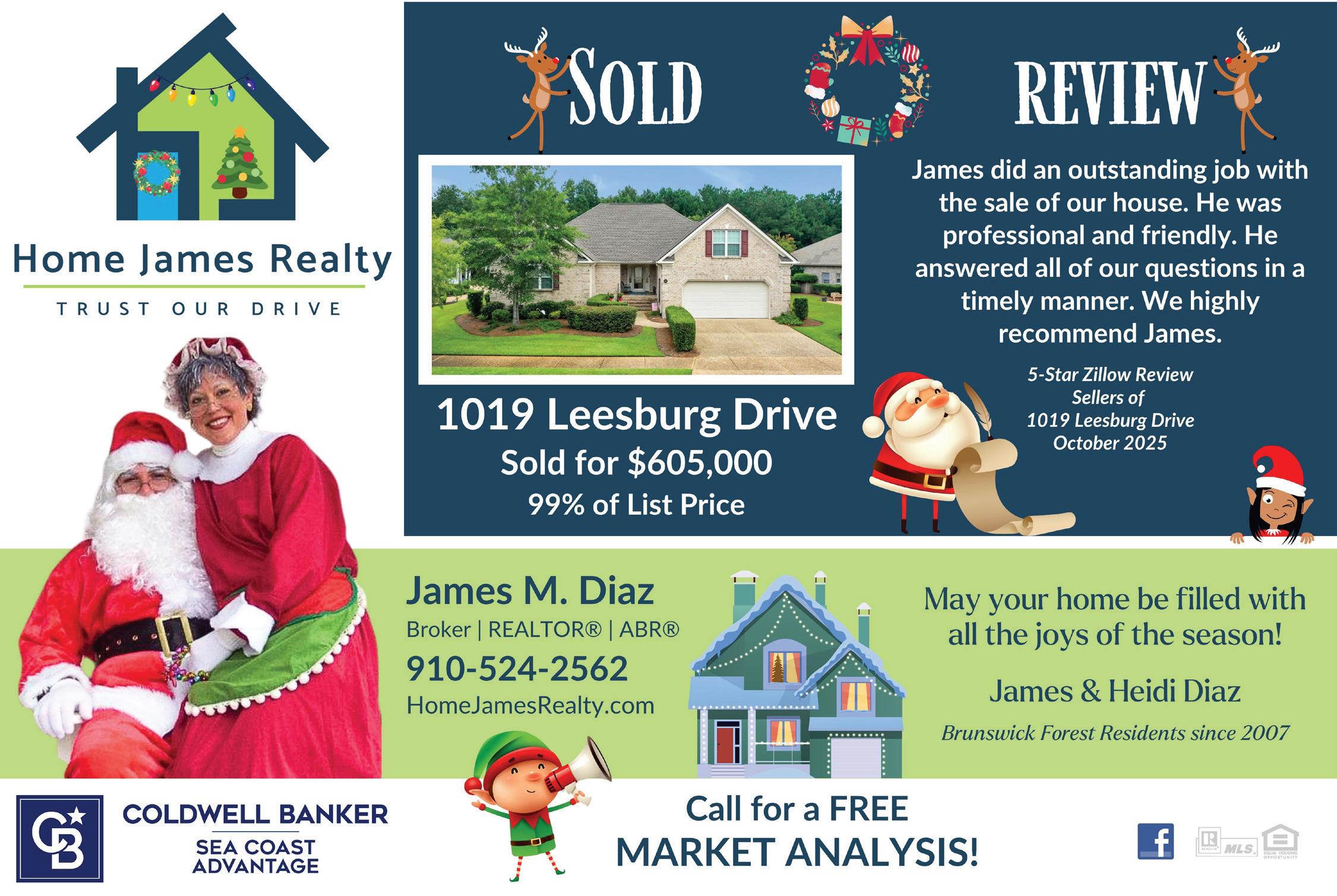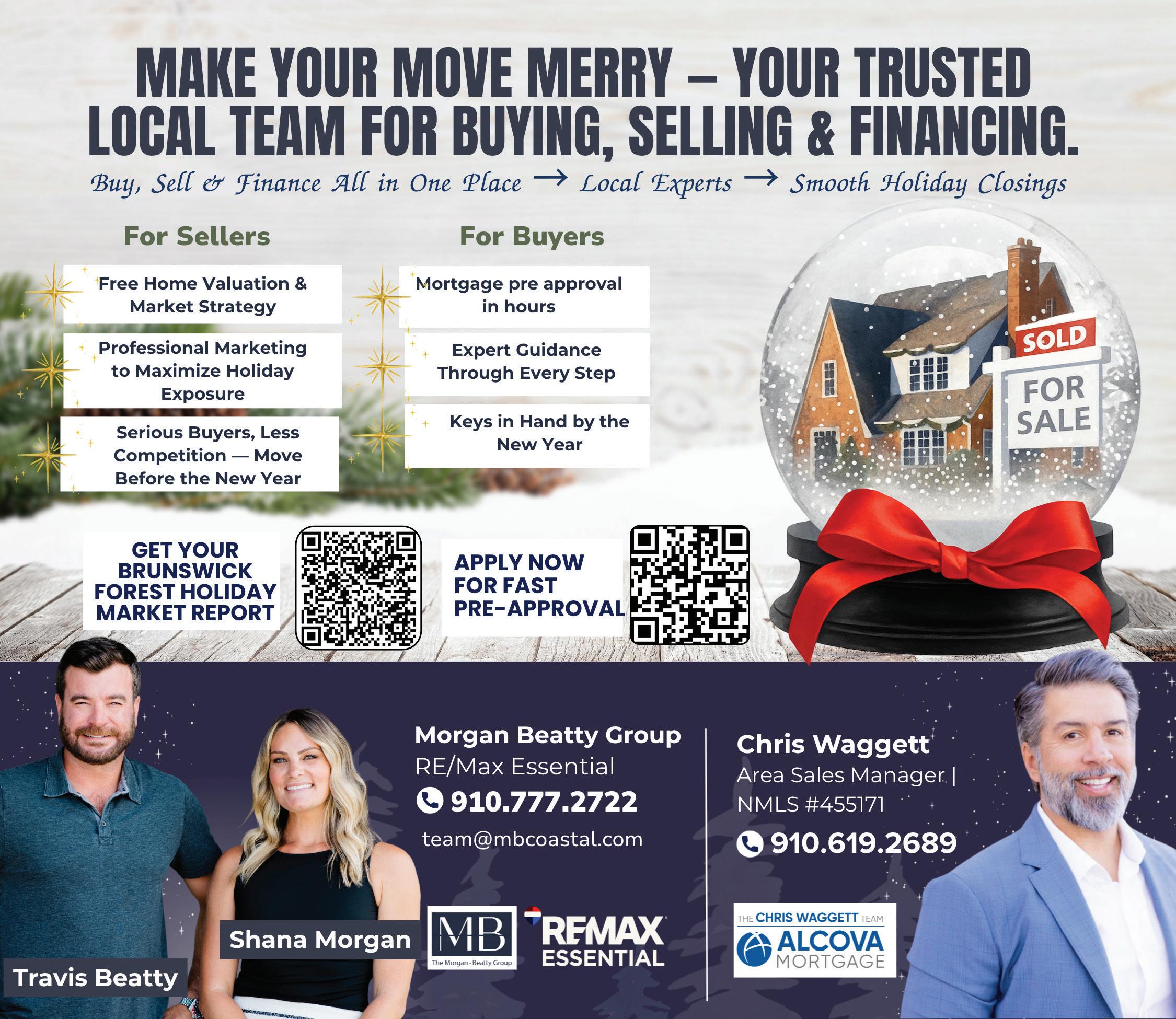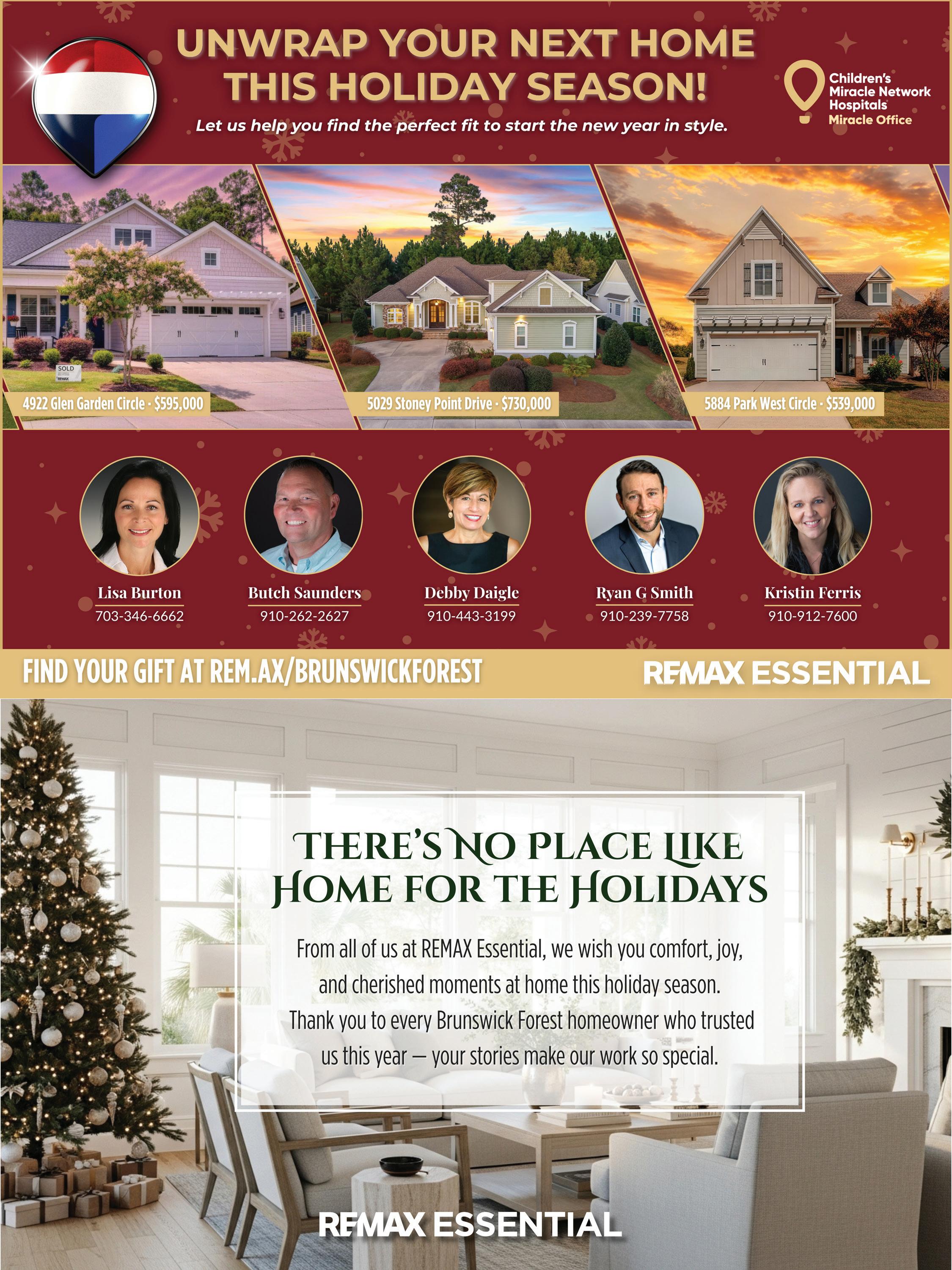 I’d like to take a moment to personally thank Tiffany Singleton and Katy Ingalls from the Fitness and Wellness Center for all the wonderful events they’ve organized this year— from the Annual Regatta to Movies in the Park and Bands at the Pool. These two do so much to keep our community educated, entertained, and healthy. I’m also grateful for their help with this month’s feature, “How Brunswick Forest Celebrates Christmas.”