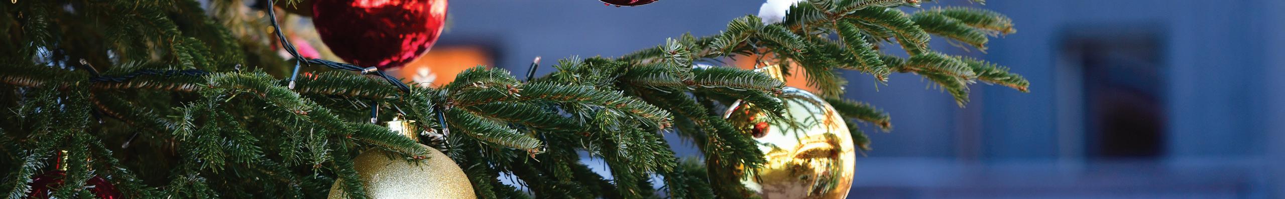 Holiday tree displays and festive ambiance.
