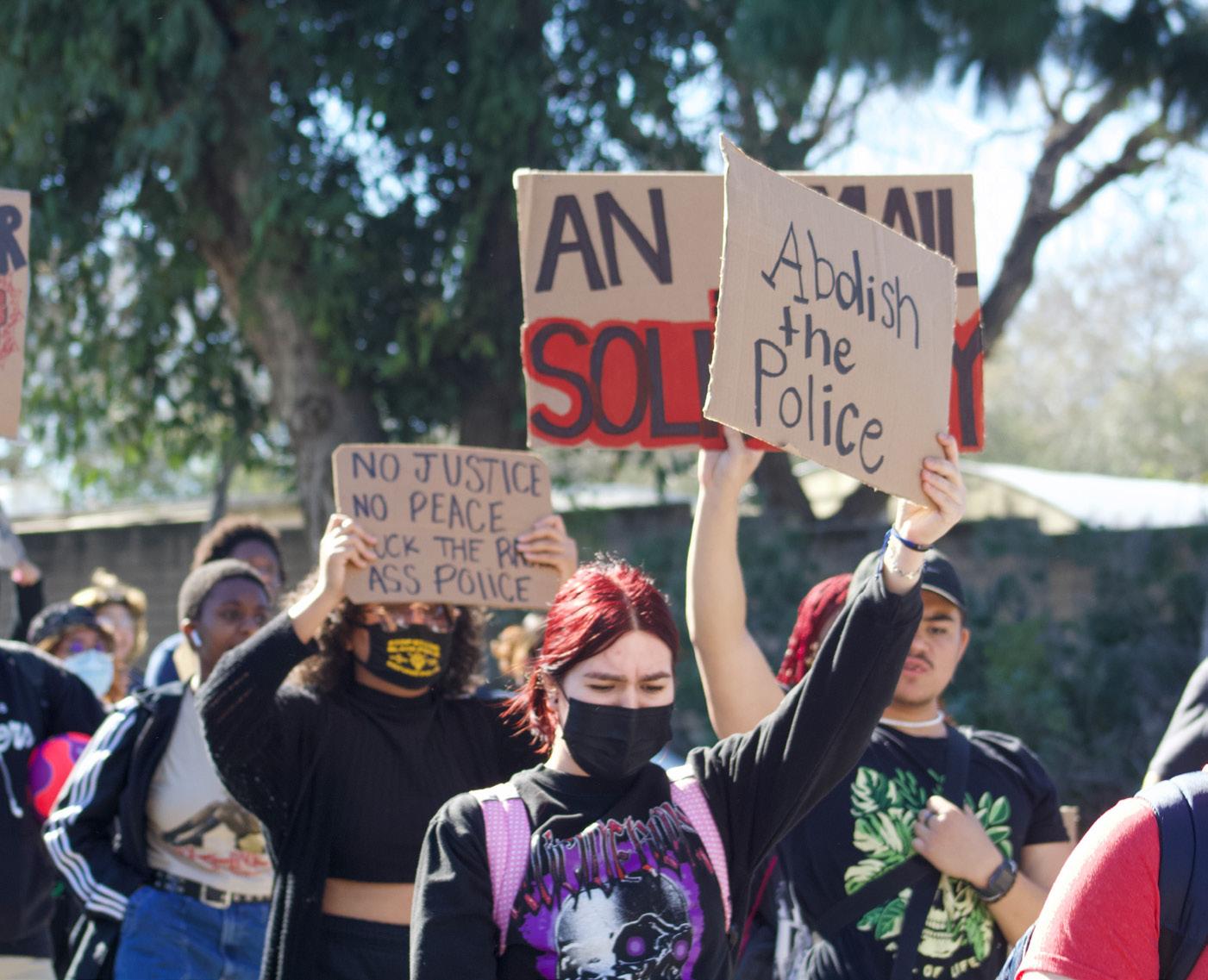 The Organization of Historically Oppressed Students marched through the Long Beach State campus on Tuesday, during the university’s Week of Welcome, to protest the killing of Tyre Nichols. Over one hundred students attended the demonstration.