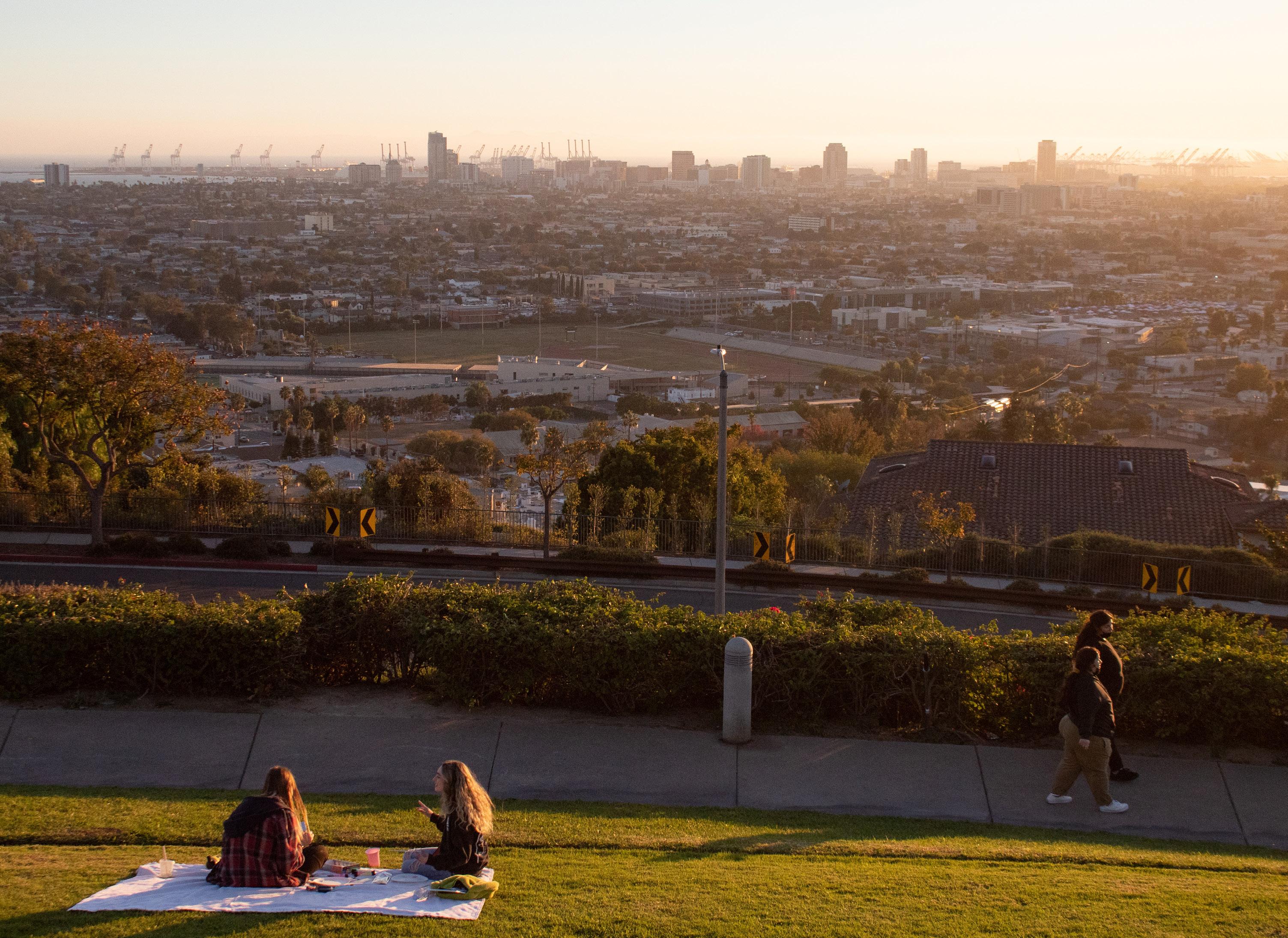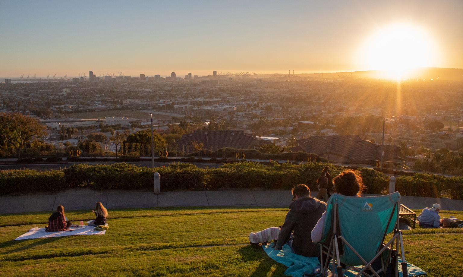 With the nearest beach being only 3.1 miles away, visitors can enjoy views of Downtown Long Beach’s skyscrapers from Hilltop Park.
