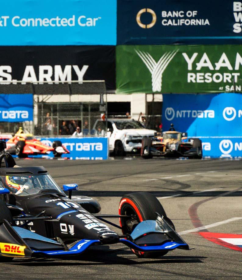 In the headline event, four-time NTT IndyCar Series champion Alex Palou claimed his first career victory at Long Beach in the No. 10 Honda for Chip Ganassi Racing, using a faster pit stop to steal the lead from pole-sitter Felix Rosenqvist in the No. 60 Honda for Meyer Shank Racing late in the 90-lap race and pull away to a 3.9-second victory.