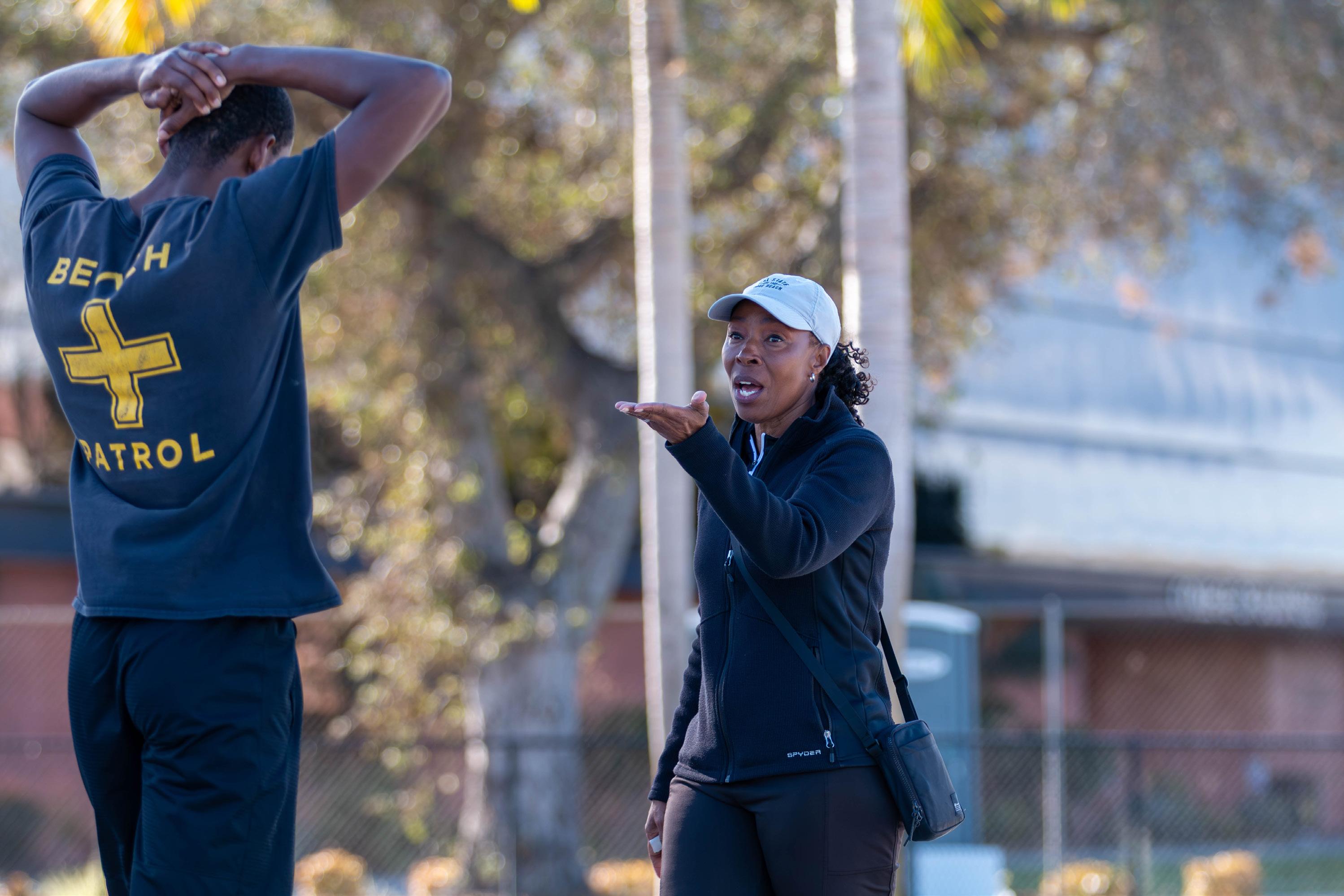 SAMUEL CHACKO / Daily Forty-Niner Track and field head coach of sprints, hurdles and relays LaTanya Sheffield will be the head coach of the USA's women's track and field team at the 2024 Paris Olympics. During The Beach opener on Friday, March 1, Sheffield was working hard with the sprinters, hurdles and relay team with running to prepare for Saturday's match at Jack Rose Track.