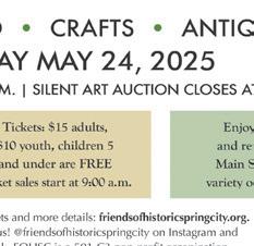 School) 45 S. 100 East, Spring City, or the Old Firehouse at 46 N. Main. Tickets may be purchased in advance online at friendsofhistoricspringcity.org; then, pick up your tour wrist band and Home Tour brochure and map at City Hall or the Old Firehouse. Tickets are $15 for ages 16 and older, $10 for youth 6 to 15 and free for 5 and under. Check out the popular “Art Squared” silent auction on the second floor of the Old School (45 S. 100 East) from 9:30 a.m. to 2 p.m. This event features 12-inch by 12inch original oil paintings by well-known Spring City and regional artists. Other original framed artwork is available for purchase from 9:30 a.m. to 4 p.m. at both the Old School and the Spring City Activity Center Art Gallery (150 E. Center St.).