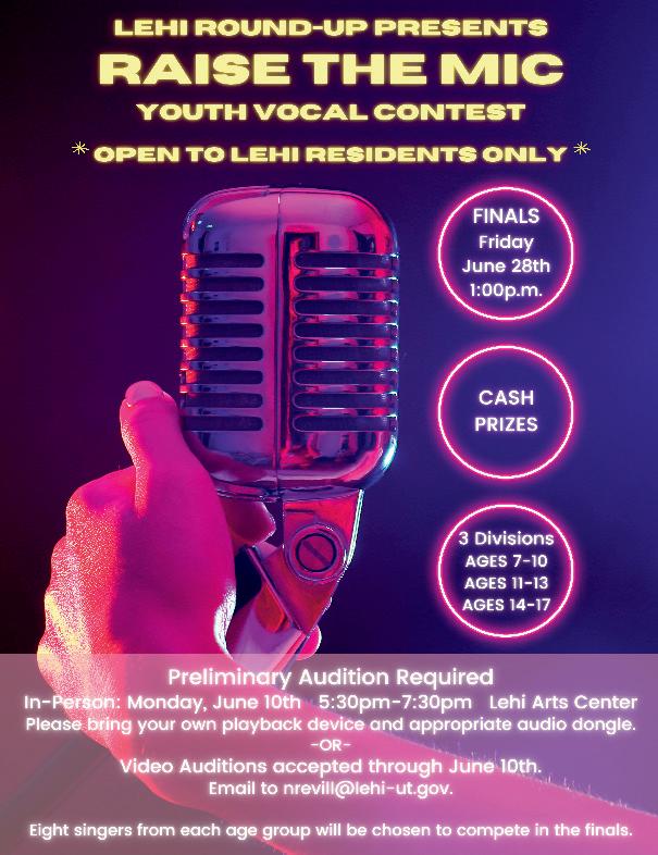 NEW this year: pre-registration ONLY will be available! Register online before June 15 at lehi-ut.gov/ legacy-center or at the Legacy Center registration office. Players are responsible for bringing their own water.