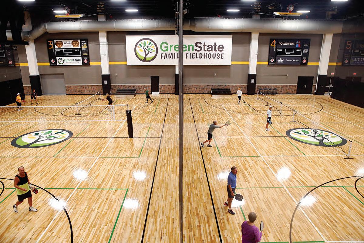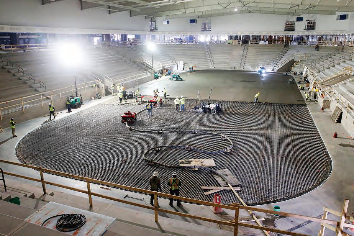 Liz Martin/The Gazette People play pickle ball at GreenState Family Fieldhouse, which adjoins Xtream Arena, in Coralville on Wednesday, Sept. 9, 2020. Liz Martin/The Gazette Workers from BCI Concrete install the concrete floor of the future Xtream Arena in Coralville on Friday, Feb. 21, 2020. Four hundred cubic yards of concrete were poured continuously to complete the floor of the ice rink. Tionna Tobias
