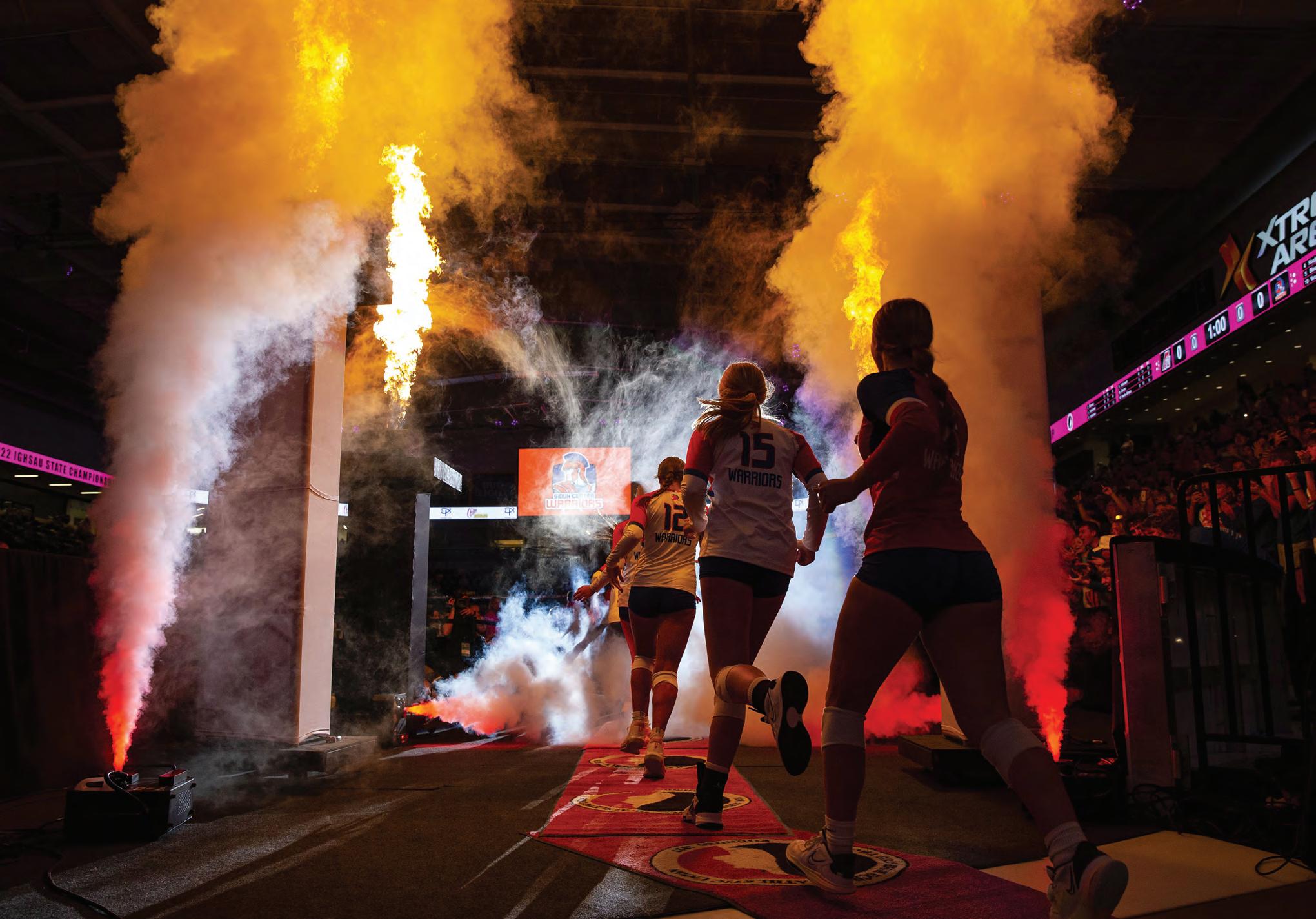 Savannah Blake/The Gazette Sioux Center players run through the tunnel during team introductions before the girls state volleyball class 3A championship game at Xtream Arena in Coralville, Iowa on November 3, 2022.