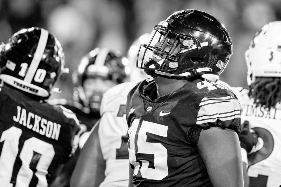Starting with the second half of the season opener against Illinois State, the Iowa line has been a key component to running back Kaleb Johnson’s 14-touchdown 1,137-yard season. Johnson repeats the mantra after every game – his job is made a lot easier