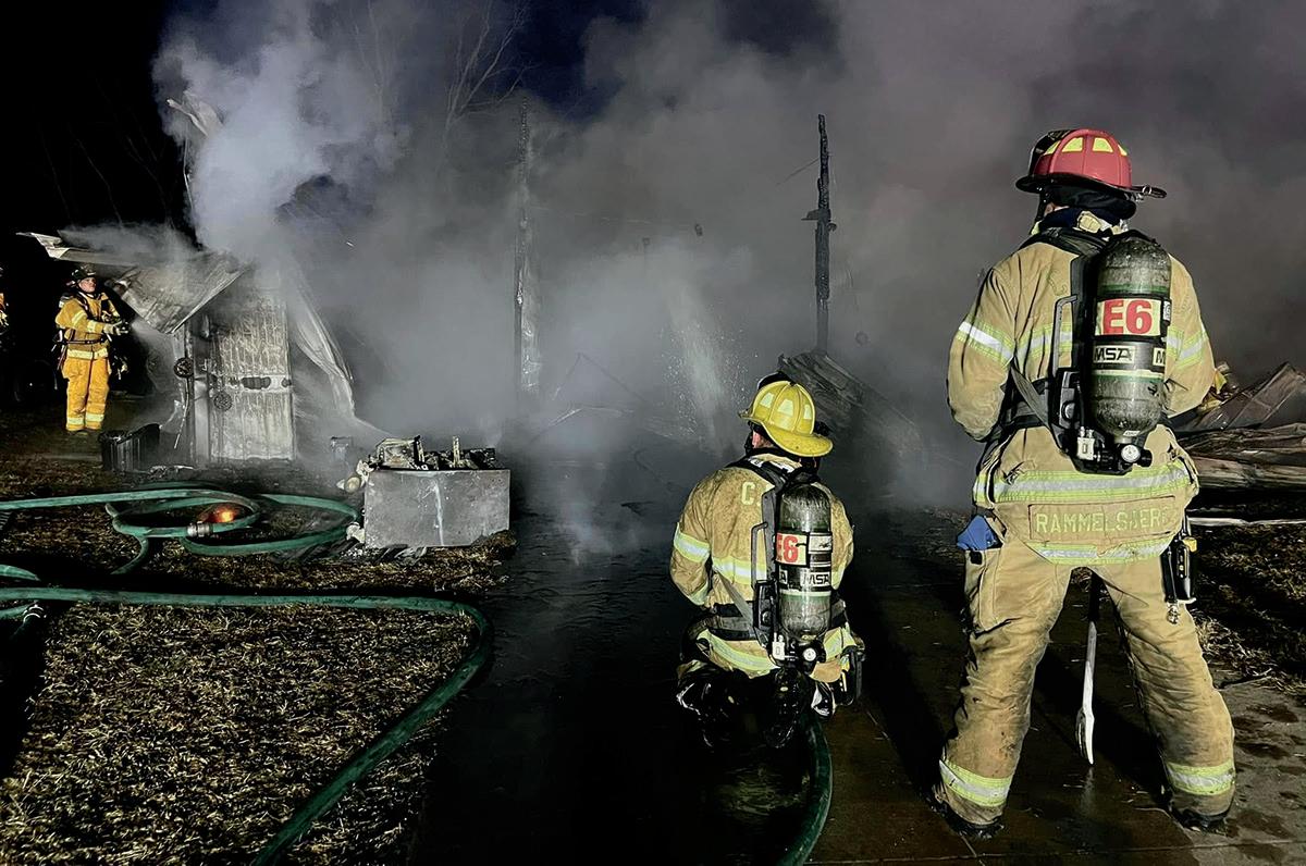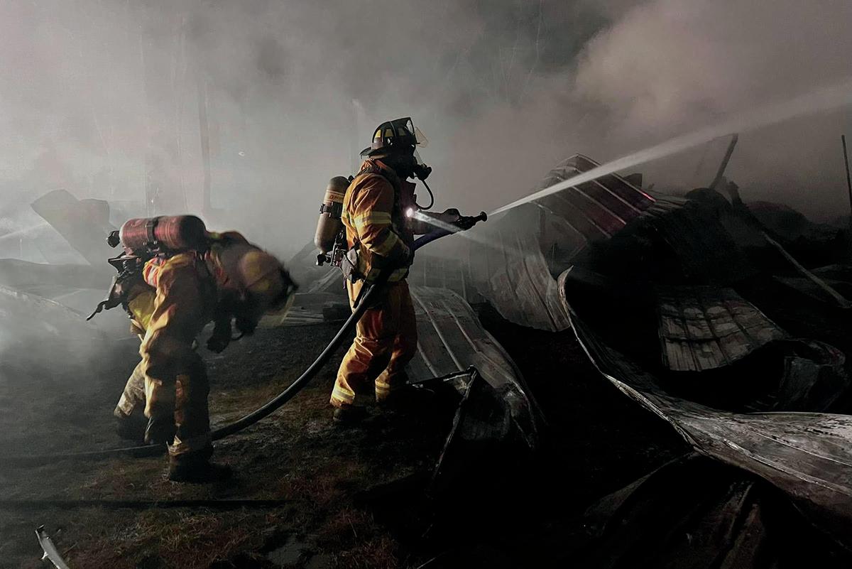 Emergency responders worked to put out the flames but the pole building and its contents were a total loss.