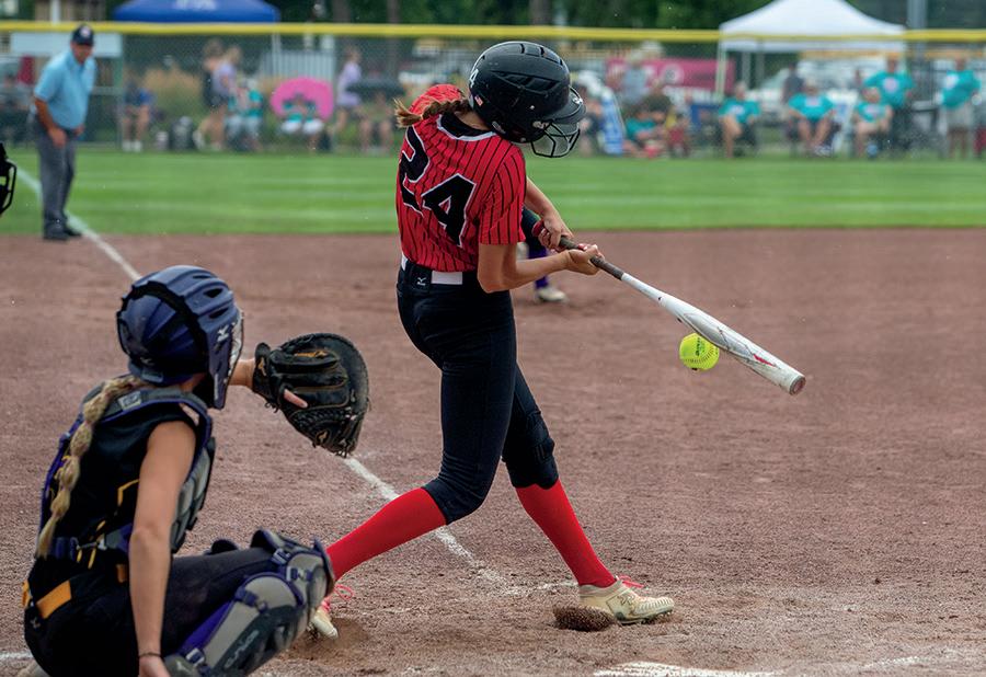 The above photo by Joel Kellar of Lisbon’s Addi Peterson hitting a single in the fifth inning from the state softball tournament was second place in the weekly class 2 best sports photo category.