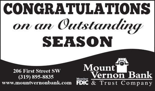 The Mount Vernon Mustang girls were the Class 3A State Champions this year, besting West Marshall 75-19, Estherville Lincoln-Central 35-34 and Dubuque Wahlert Catholic 47-36 at the state tournament at Wells Fargo Arena. That concluded a 24-1 season for the girls’ team. That comes after the team four years ago had only one win and coach Nate Sanderson’s rebuilding effort for the program began, taking the team to the semifinals last year in a 22-4 season.