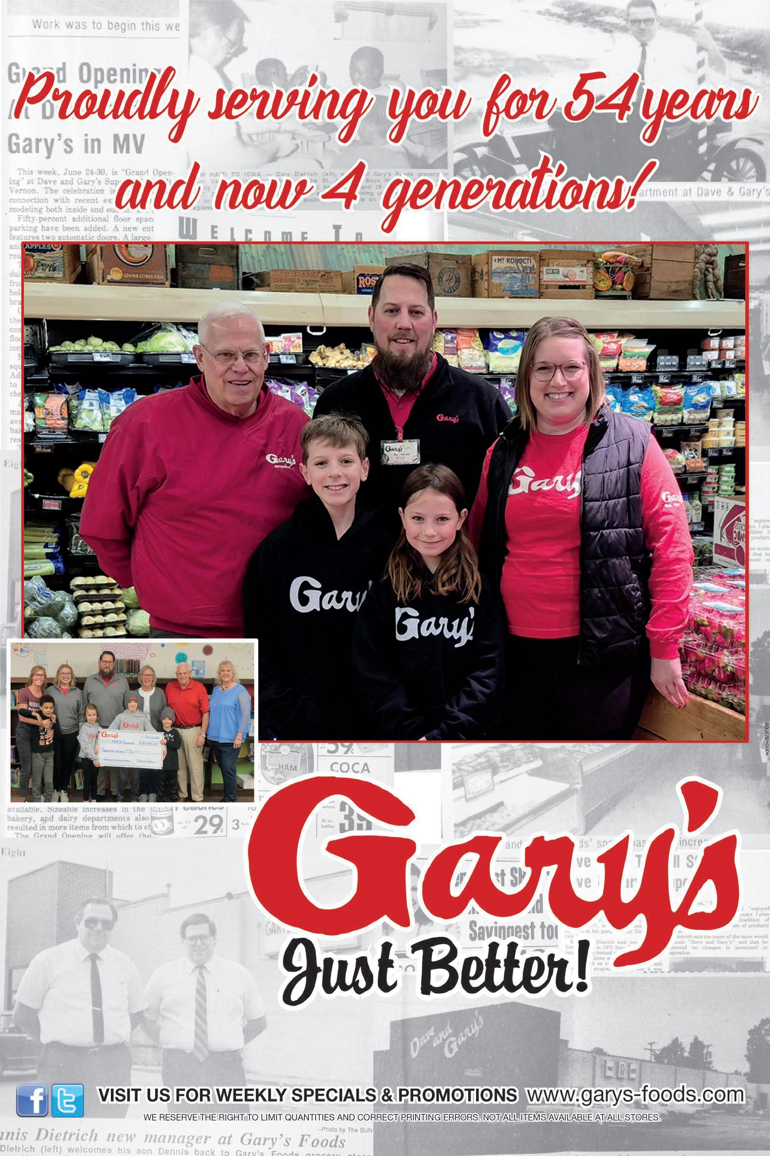 Here at Gary’s Foods, we’ve been the grocery store that’s right on your way home for nearly 55 years! In 1971, Gary Dietrich and Dave Rank purchased the existing Super Valu store. Dennis took over the business in 1987 and was joined by his son, Peter, in 2010. The fourth generation of the Dietrich grocers, Amos and Edith, can be found “working” in the back room or directing customers to the ice cream cones or jars of honey after school.