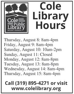 Cole Library houses Mount Vernon’s public library (colelibrary.org), a partnership offering extensive resources and extended hours unusual for a small-town public library.