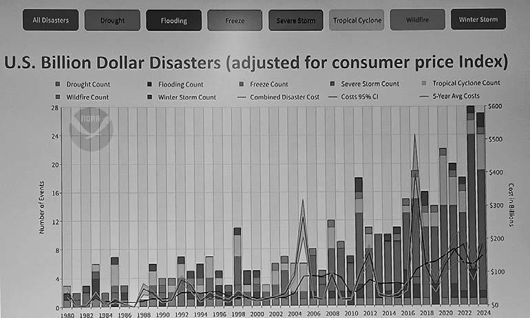 Thorne highlighted how the increase of greenhouse gases in the atmosphere leads to increased heating and droughts, as well as other effects like increased pollen from weeds, more severe storms and more algae blooms in water, making those sources undrinkable.