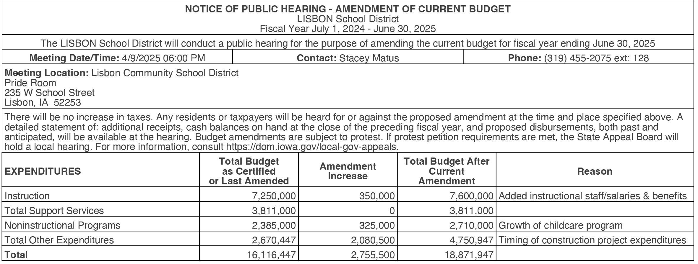 Reports of Mayor/Council/Administrator Mayor’s Report. Mount Vernon was recognized by Tree City USA for recent tree plantings and have been invited to a luncheon in Ankeny. The Bijou will be recognized for a grant that was received from T-Mobile for the greenspace east of the building. Wieseler was interviewed by CBS in regards to tariffs as they relate to agriculture. Committee Reports. Engel reported that the Mount Vernon-Lisbon Childcare group met last week. Both school districts have signed on with Champions to help with the Early Childhood Learning Center in Lisbon and Kids Club to help augment wages for these two entities. Spring fundraising for the childcare group will start soon. City Administrator’s Report. Full report available on the City website under the March 17, 2025 Council Packet.