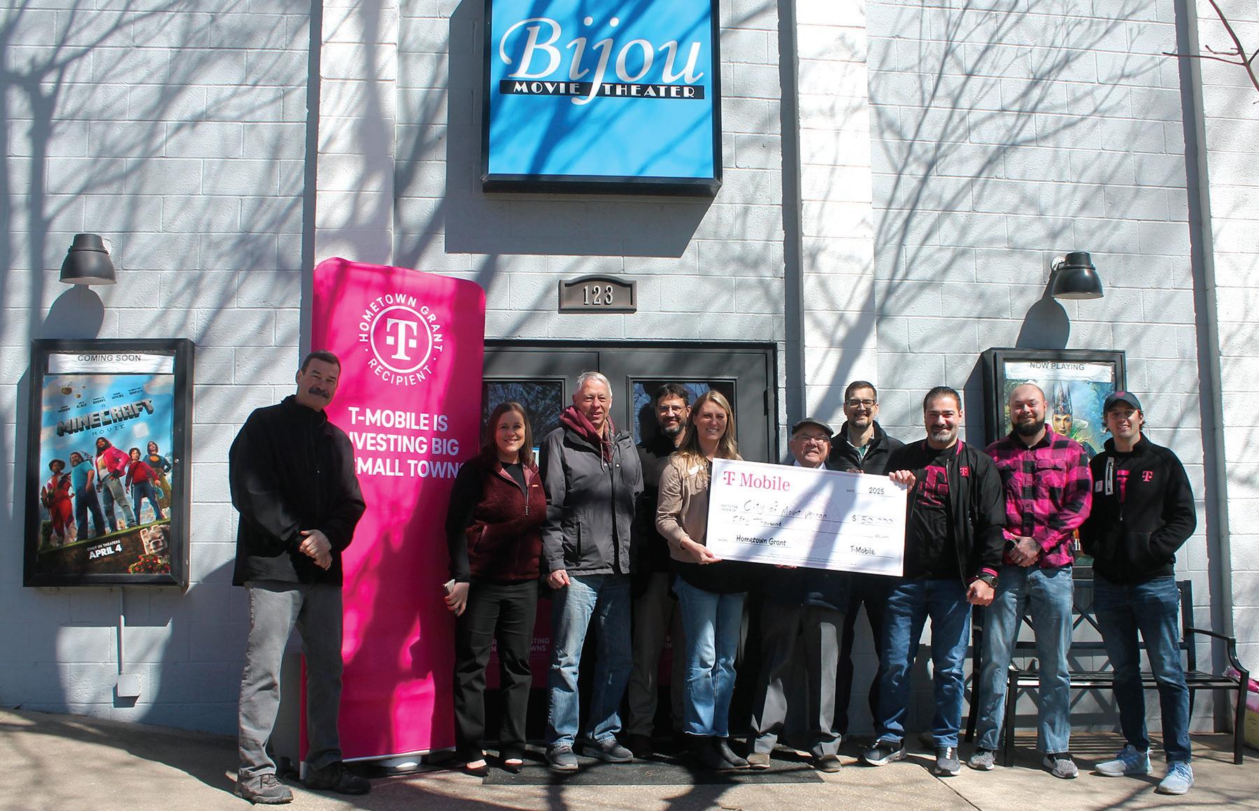 Representatives from T-Mobile’s Hometown Grants were present Thursday, March 20, to make a $50,000 presentation for the Bijou Movie Theater.
