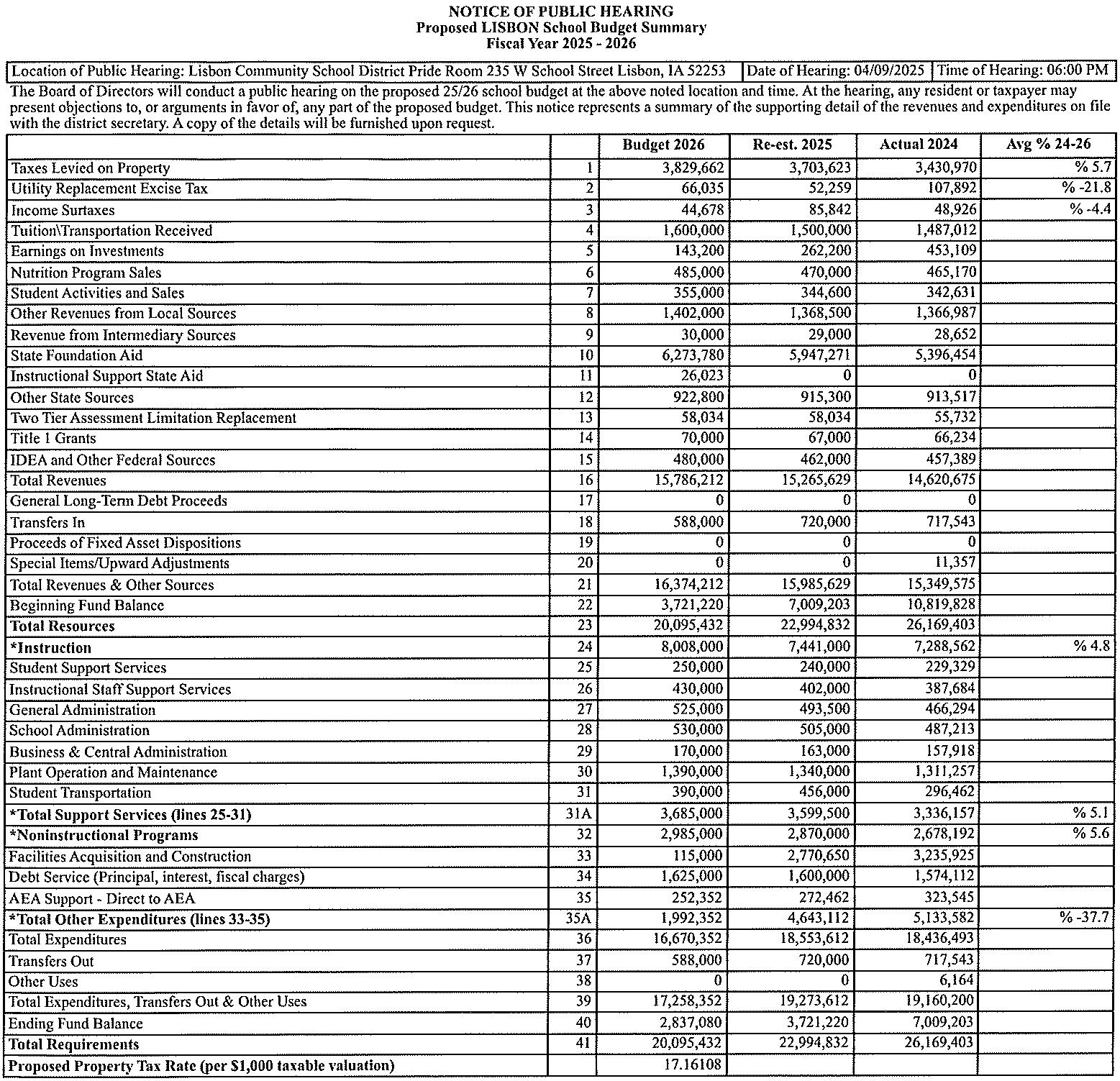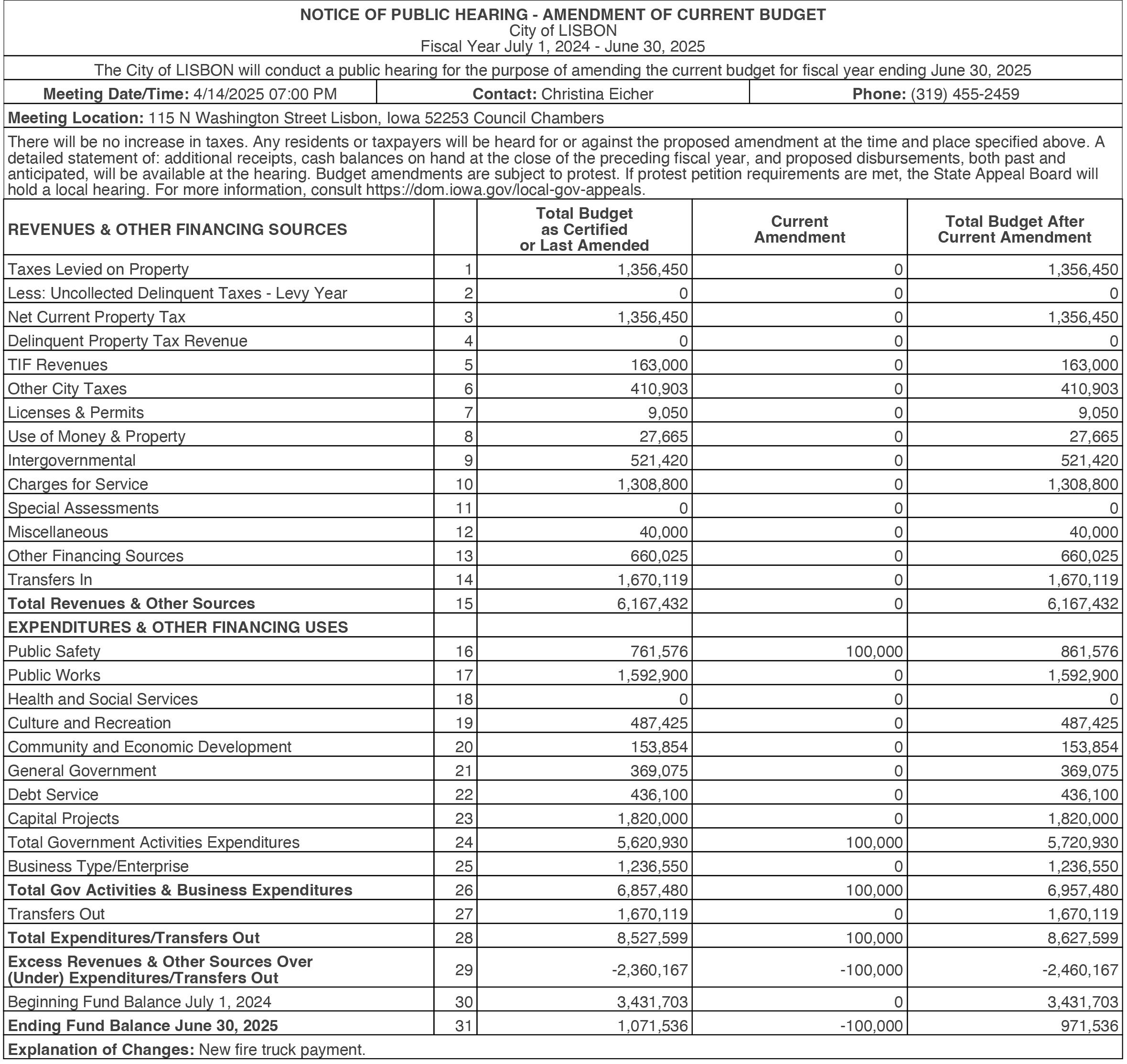 Budget Discussion. With the Fiscal Year 2026 budget certification coming up in April, Nosbisch gave Council an update on potential cuts and increases that will be necessary. The property tax levy rate in Mount Vernon will increase from 13.33601% to 13.50187%. The water rate increase for FY26 will remain at 3% but sewer rate increases will need to go from the planned 8% to 12% this year. The net increase for utility rates for FY26 will be 15%. Pool prices will need to be increased to accommodate for increased lifeguard pay and general pool upgrades. A part-time City Hall position will be cut and wages for certain employees will be moved to enterprise funds to free up space within the general fund.