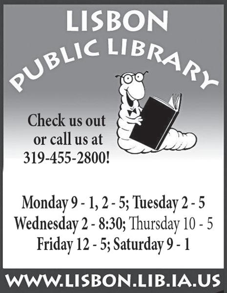 Lisbon Reading friends book discussion group Lisbon Public Library, 7 p.m.