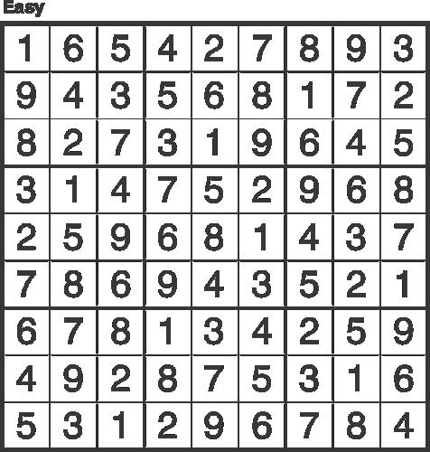To play: Complete the grid so that every row, column and every 3x3 box contains the digits 1 to 9. There is no guessing or math involved, just use logic to solve.