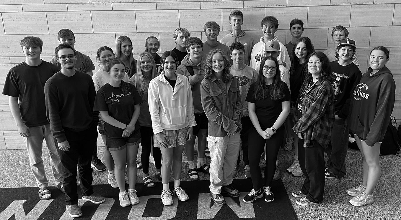 Placing third were: Alex Briesemeister, Cole McDermott, Jayden Pyatt, Reid Rolland, Maddox Thede, and Jakob Yock for video story “2025 Freshman Basketball Team;” Lucy Wischmeyer for photo story “The Mustangs Trample over Mount Pleasant in Homecoming Win;” Lydia Marshall for feature photo “A Dazzling Victory;” Sarabell Steil for editorial cartoon/comic strip “Year-Round School Should Not Be Allowed;” Seth Rushford for news photo “Drone Alone;” John Bishop, Cooper Krob, Beckett Johnson, Nathaniel Lewis, Cayden Scheil for podcasting “The Mustang Moon Podcast: Brawlstars;” Audrey Vaughn, Kade Kaiser for the multimedia story feature “Hyping Up for Homecoming: Friday’s Pep Assembly Gets Students Excited;” Avery Thurn for sports action photo “State Champion Wrestler Jase Jaspers;”