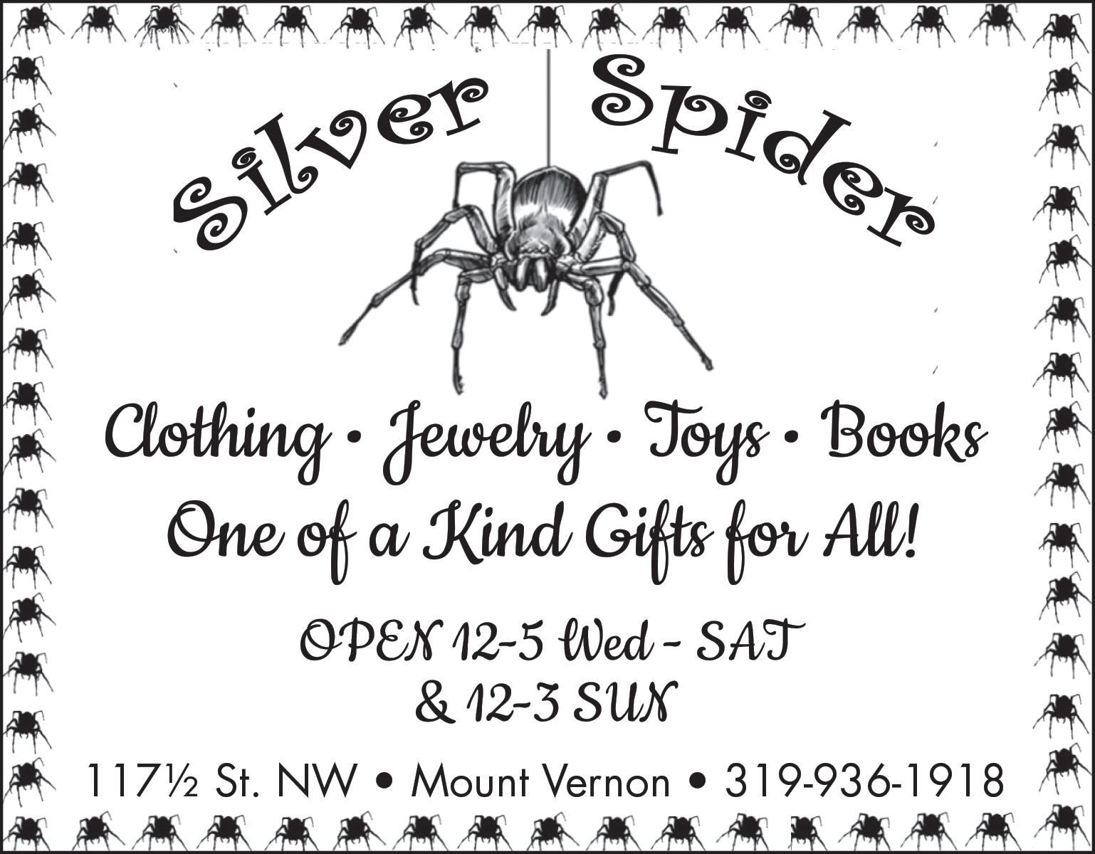 Silver Spider in uptown Mount Vernon is full of unique treasures. New merchandise arrives daily, so regular visits to the store are a must.