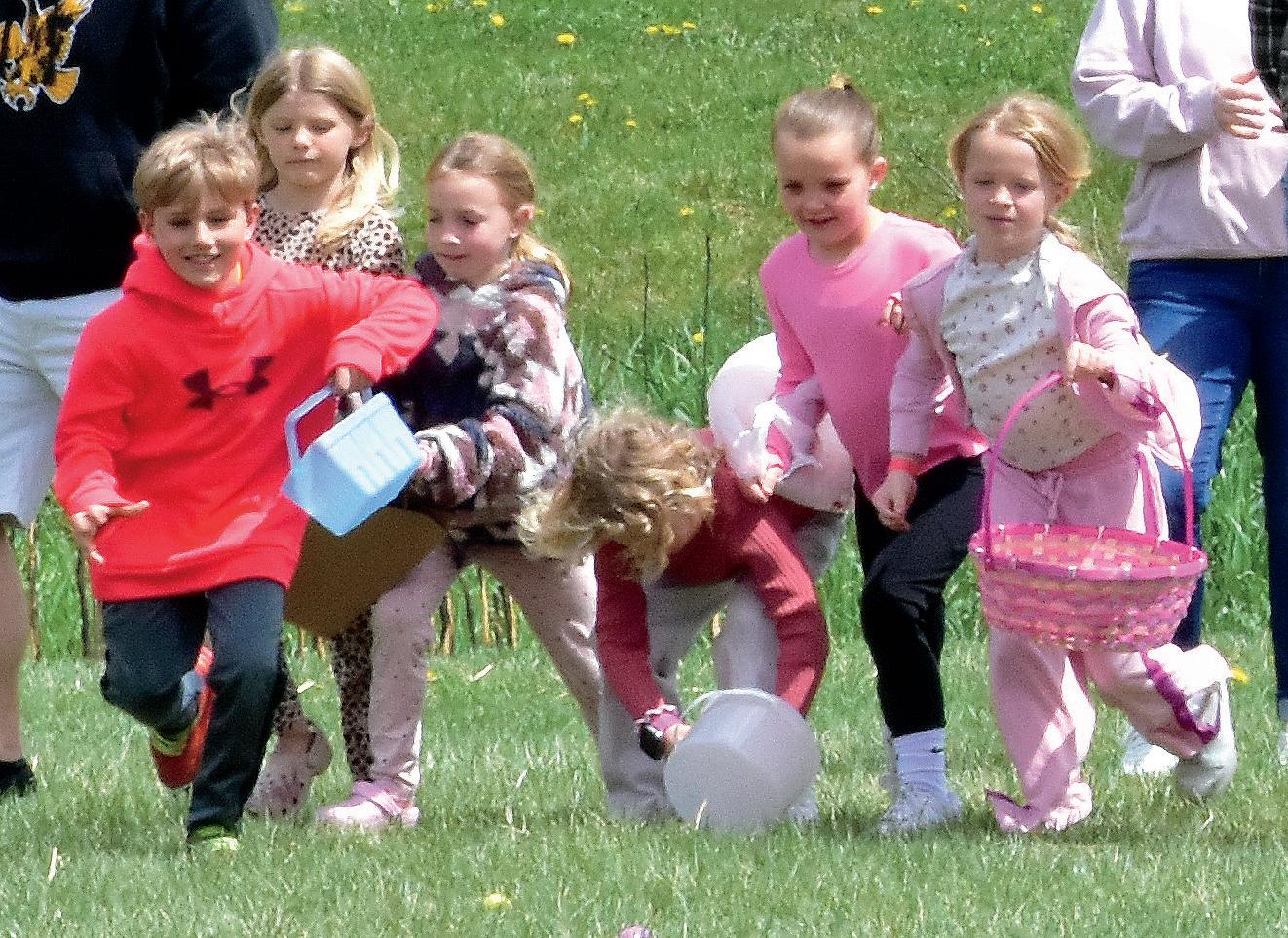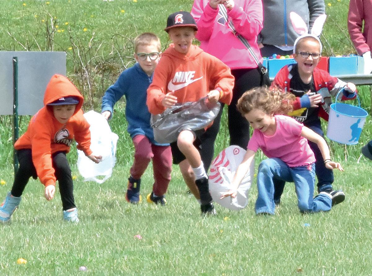 SOLON — Joe Krob stood before a line of children and their parents, arranged in groups by age. Behind him were 3,456 plastic eggs containing candy and scattered across the football field at the Solon Recreation and Nature Area. At precisely 1:30 p.m., Krob sounded a small air horn and 117 kids scrambled forward with baskets and bags in a frantic effort to gather as many eggs as possible.